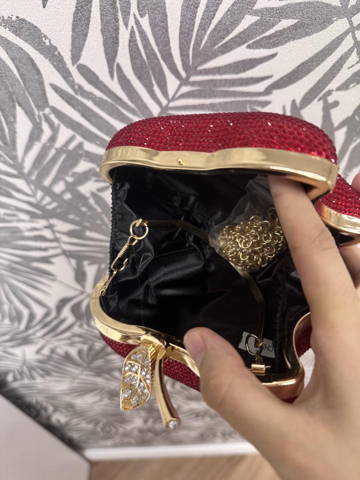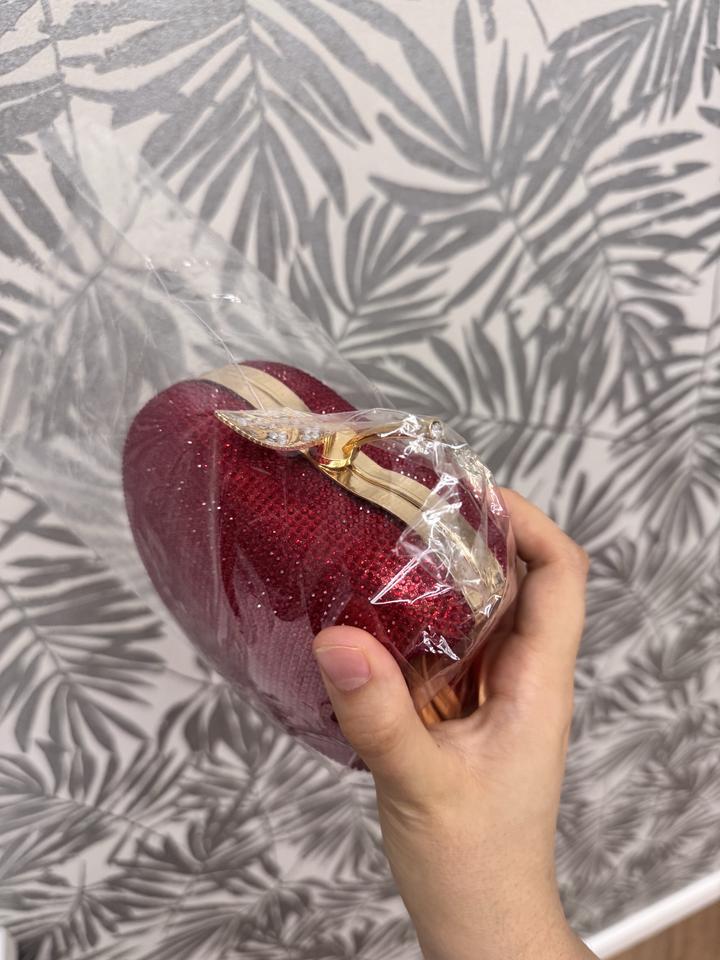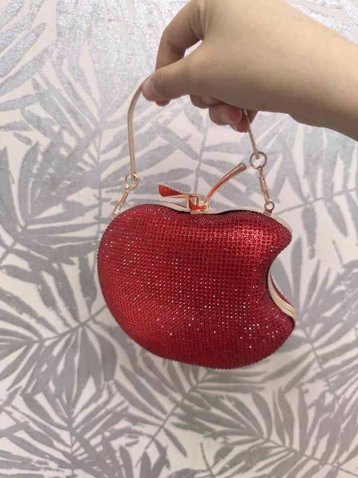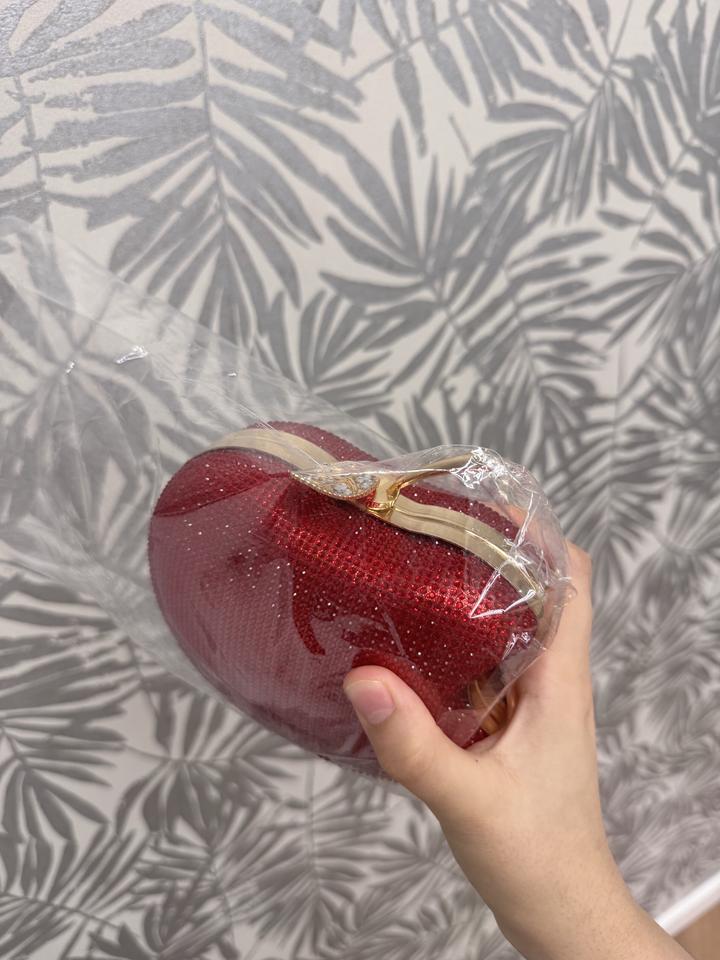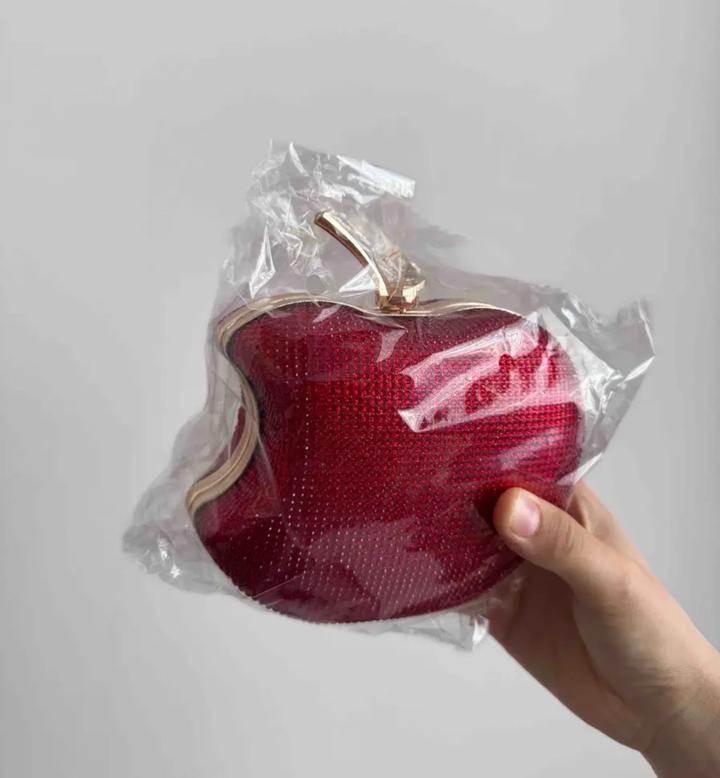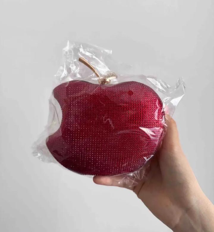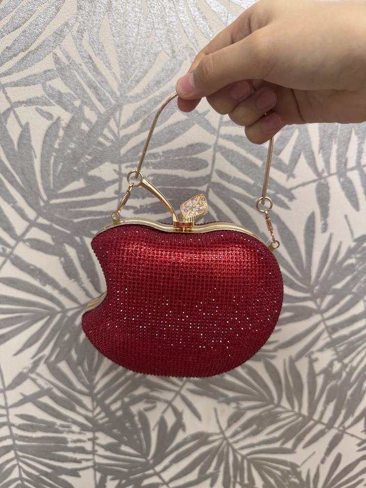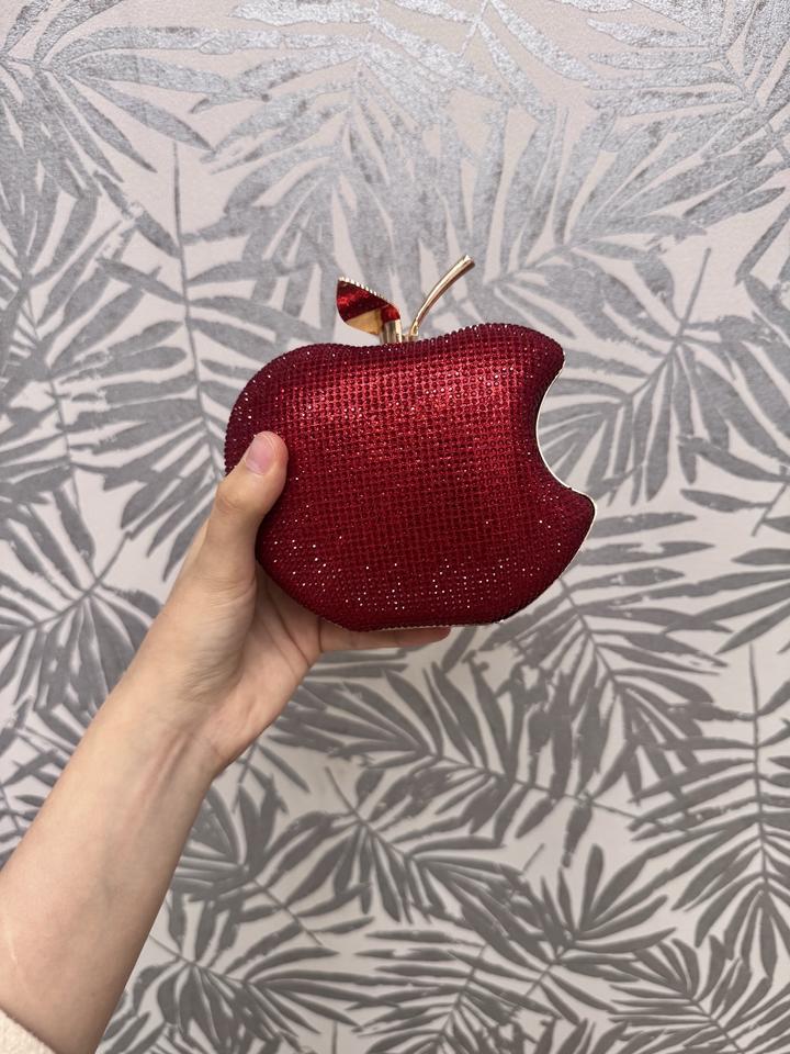 Красная сумка клатч яблоко переливающаяся блестящая-