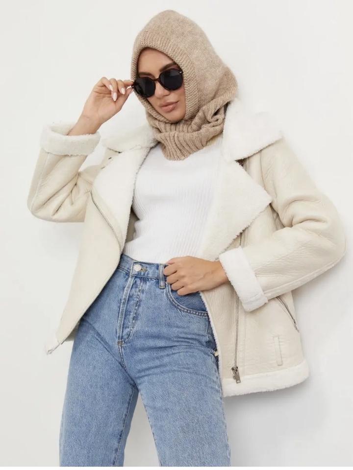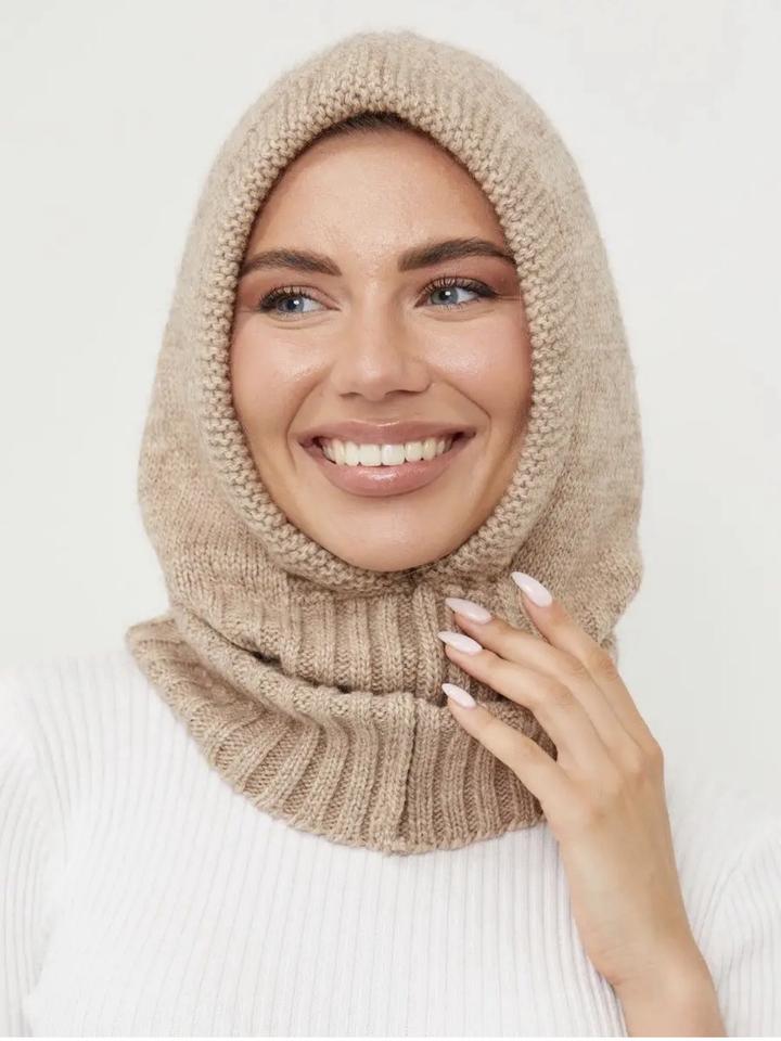 Капор вязанный в бежевом цвете Отлично защищает от ветра и холода Закрывает голову и шею Состояние отличное Артикул: 394401