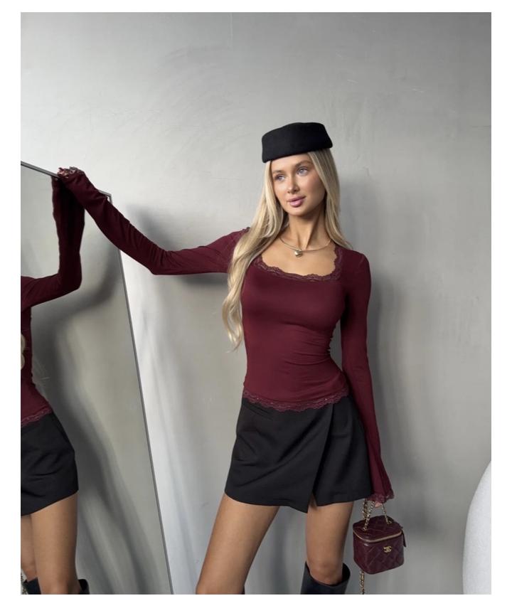 Продаю лонгслив Немного оттенок красного Сидит красиво подойдет для вечернего образа Цвет более красный на картинке бордовый , но в жизни красный он ! Артикул: 394472
