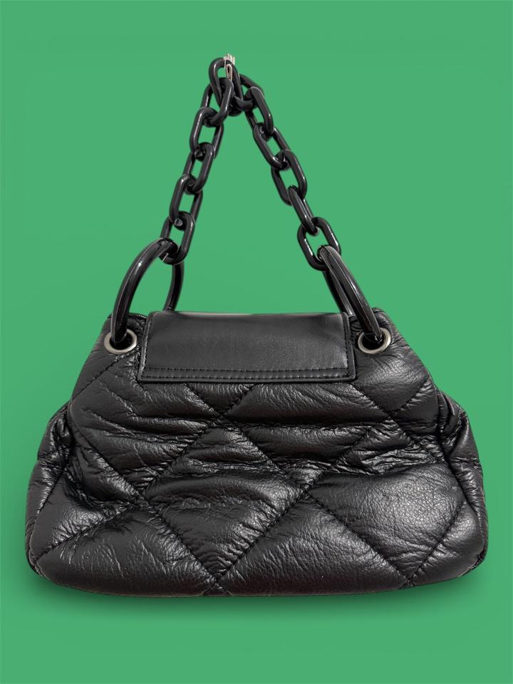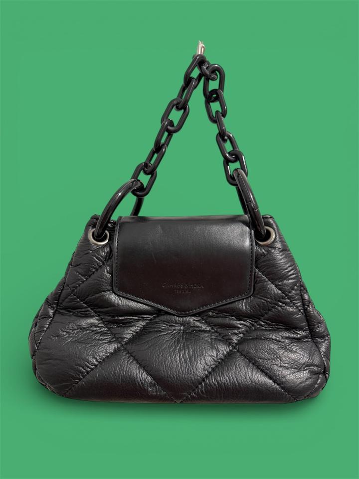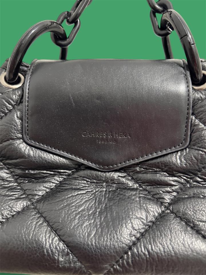 Cahres & Heka. Стёганая мини-сумка с цепочкой. Компактная чёрная сумка с мягкой стёганой фактурой и короткой пластиковой цепочной ручкой. Универсальный дизайн подойдёт как для повседневных образов, так и для вечерних выходов. Есть лёгкие поверхностные следы носки/хранения на клапане. Артикул: 394690