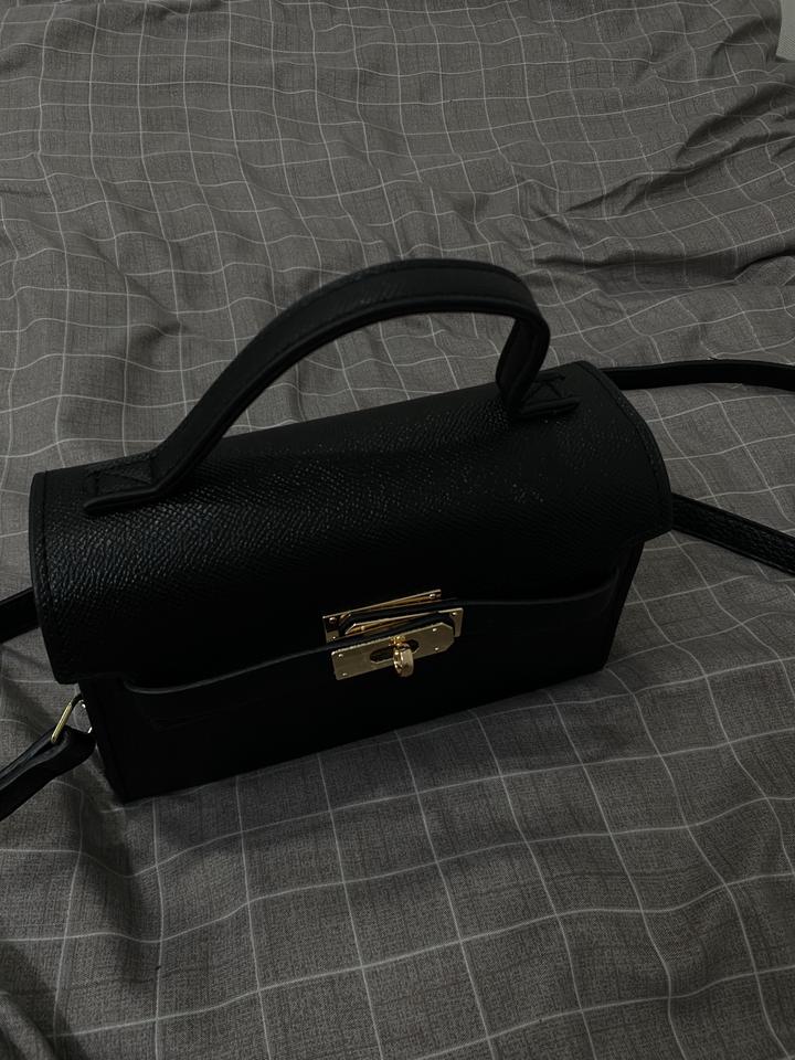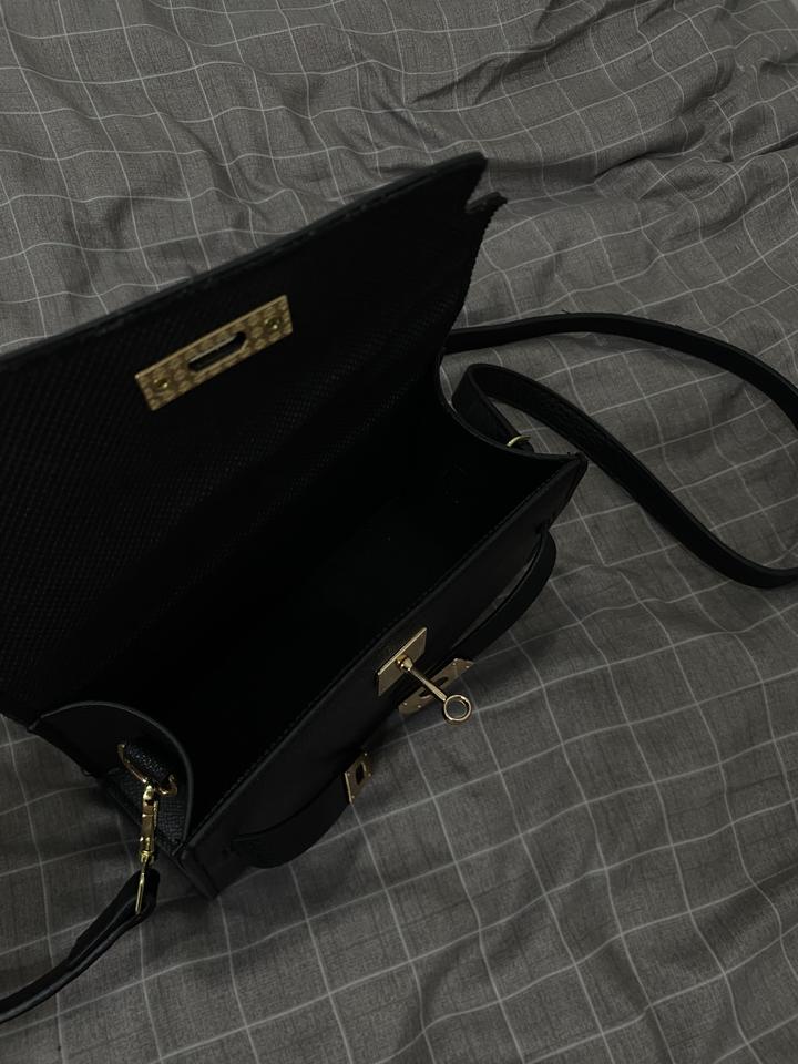 Элегантная черная сумка в классическом стиле. Выполнена из прочного фактурного материала, держит форму и выглядит очень дорого. Имеет удобную ручку для ношения в руке, а также длинный ремень — можно носить на плече или через плечо. Украшена стильной фурнитурой золотого цвета с надежной застежкой. Внутри достаточно места для телефона, кошелька, косметики и других необходимых мелочей — отлично подходит как для повседневного использования, так и для выхода. Артикул: 395084