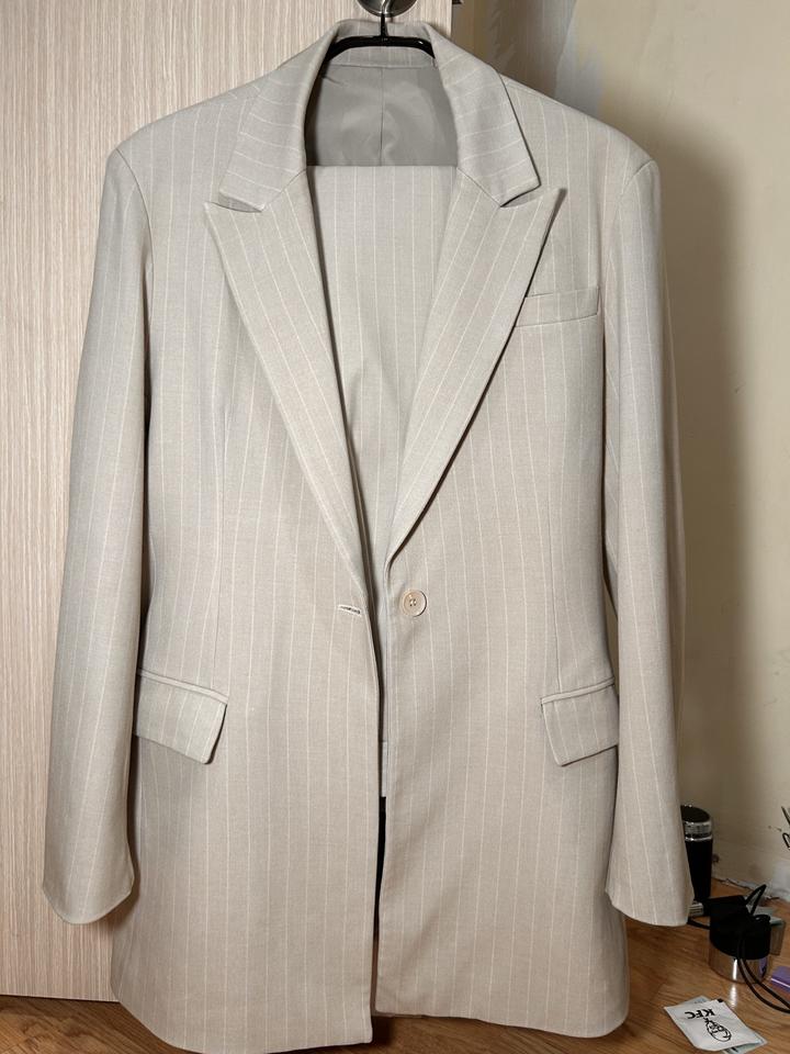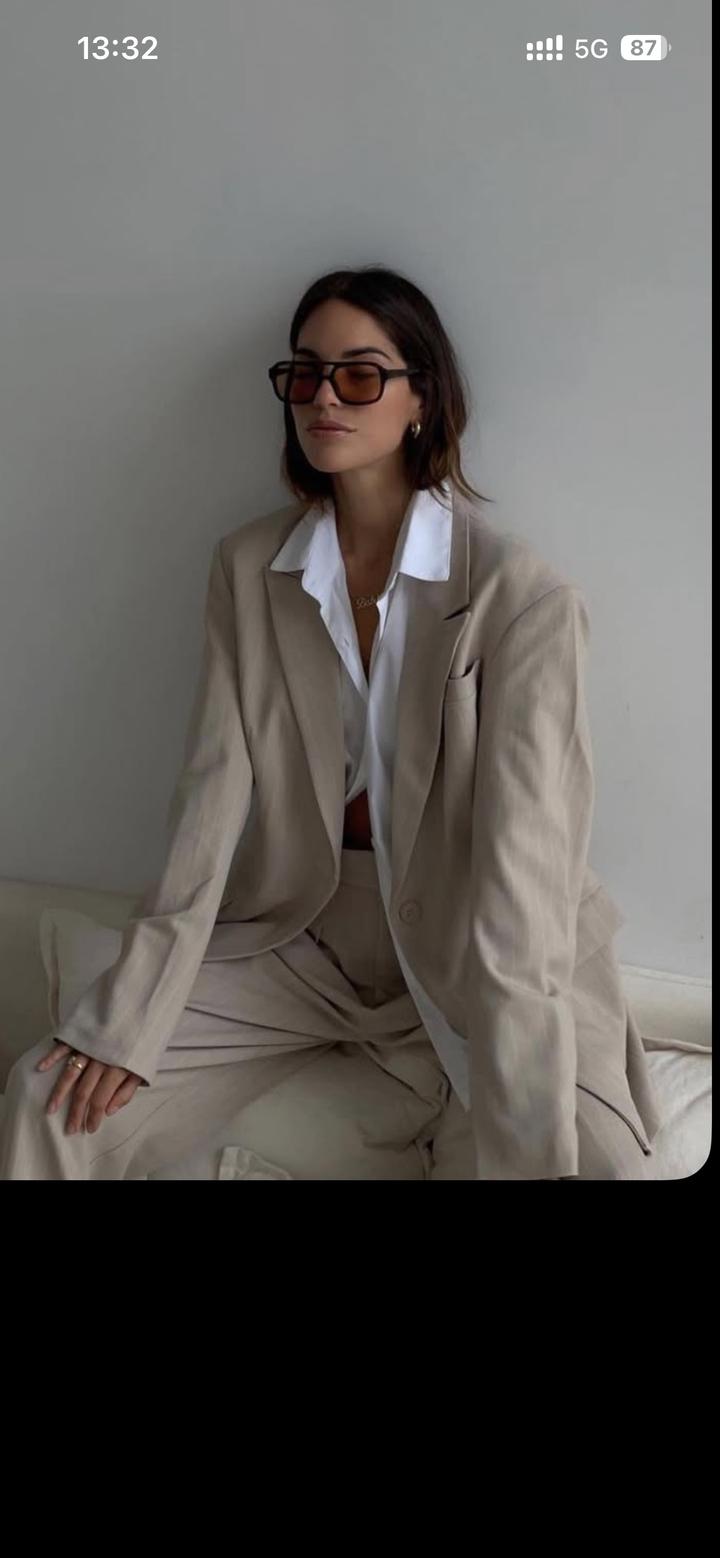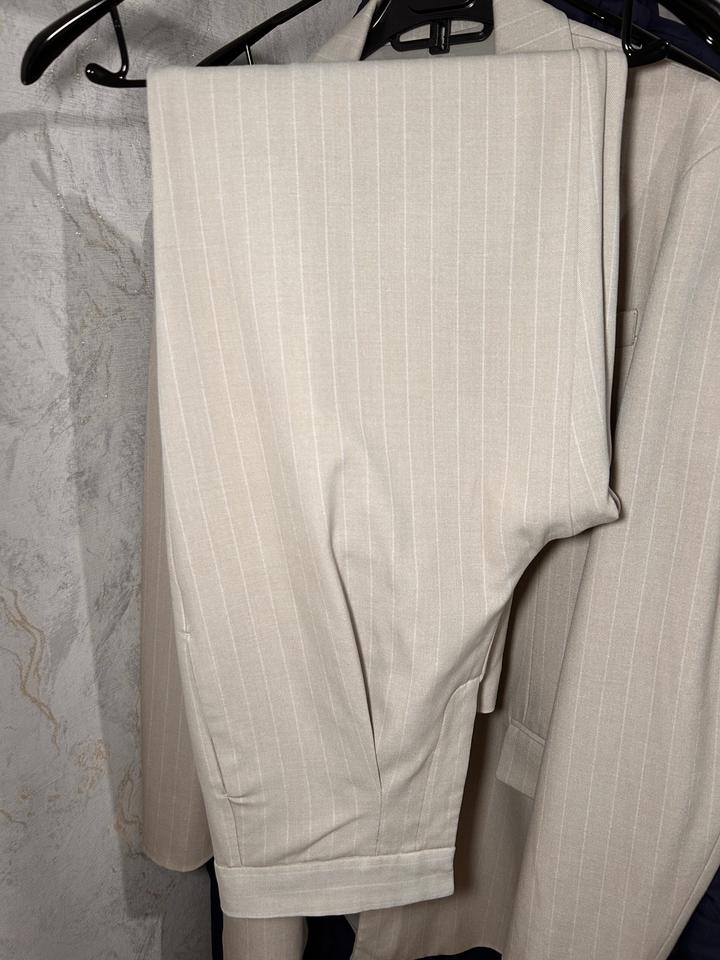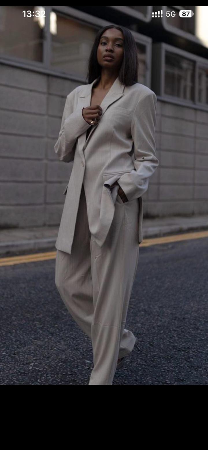 Оверсайз костюм, состоящий из брюк и пиджака. Размер s. Желательно на более-менее высокий рост. На мой рост 162 слишком длинноватый пиджак был. Но если кому-то нравится очень оверсайз то подойдет тоже. Можно носить пиджак отдельно как платье. Состав шикарный, спокойно переносит стирку и пиджак после стирки если сушить на плечиках можно и не гладить. Состояние отличное, носился изредка на выходы. Заказан был с официального сайта из Англии. Артикул: 395747