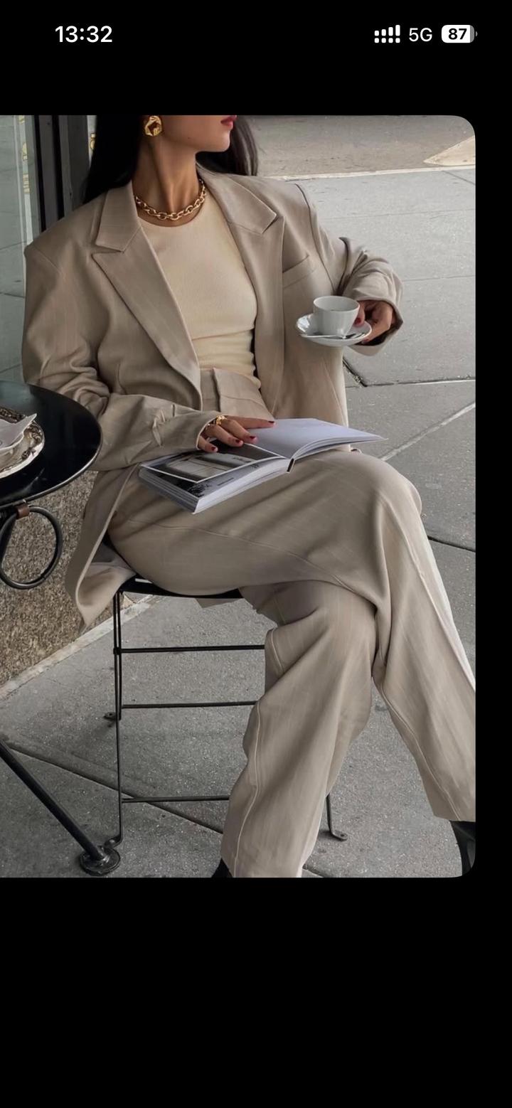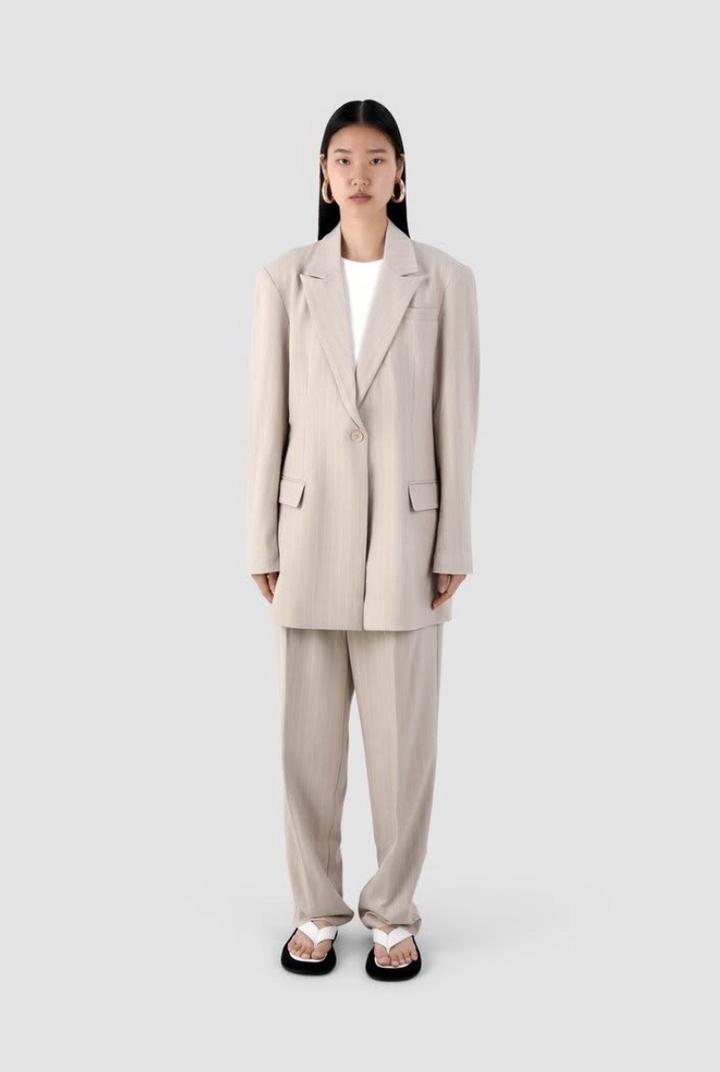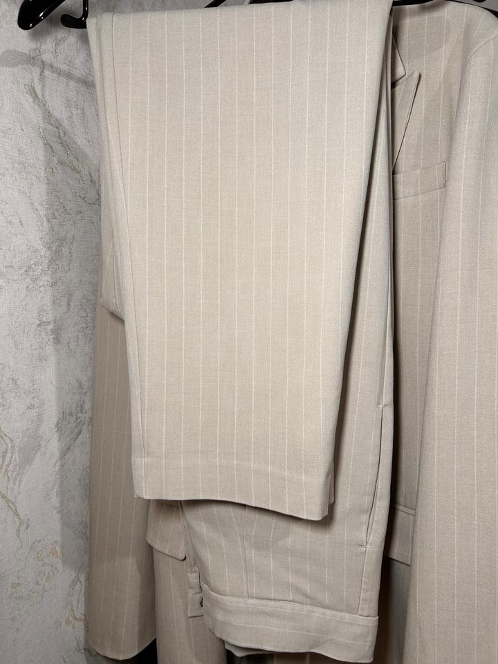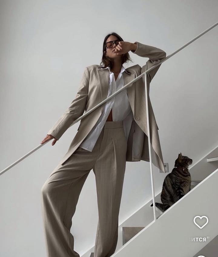 Оверсайз костюм, состоящий из брюк и пиджака. Размер s. Желательно на более-менее высокий рост. На мой рост 162 слишком длинноватый пиджак был. Но если кому-то нравится очень оверсайз то подойдет тоже. Можно носить пиджак отдельно как платье. Состав шикарный, спокойно переносит стирку и пиджак после стирки если сушить на плечиках можно и не гладить. Состояние отличное, носился изредка на выходы. Заказан был с официального сайта из Англии. Артикул: 395747
