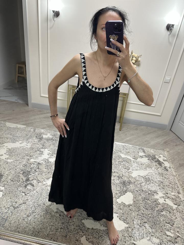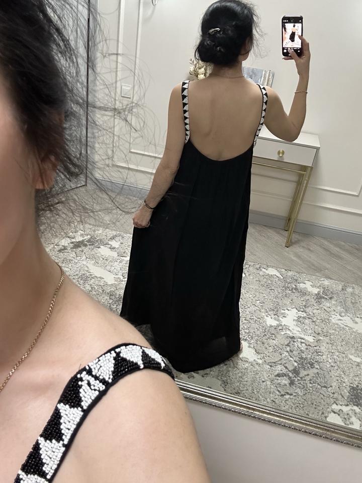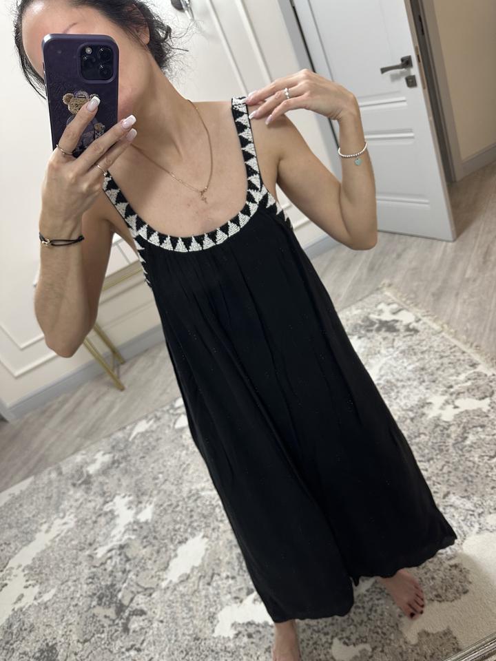 Сарафан Zara xs на бирке, но хорошо тянется, подойдет до м-л, не просвечивает, длинный подклад в тон. Купила в прошлом году в Достык Плаза, не прижился в гардеробе, весь бисер на месте, в идеальном состоянии. Артикул: 395983