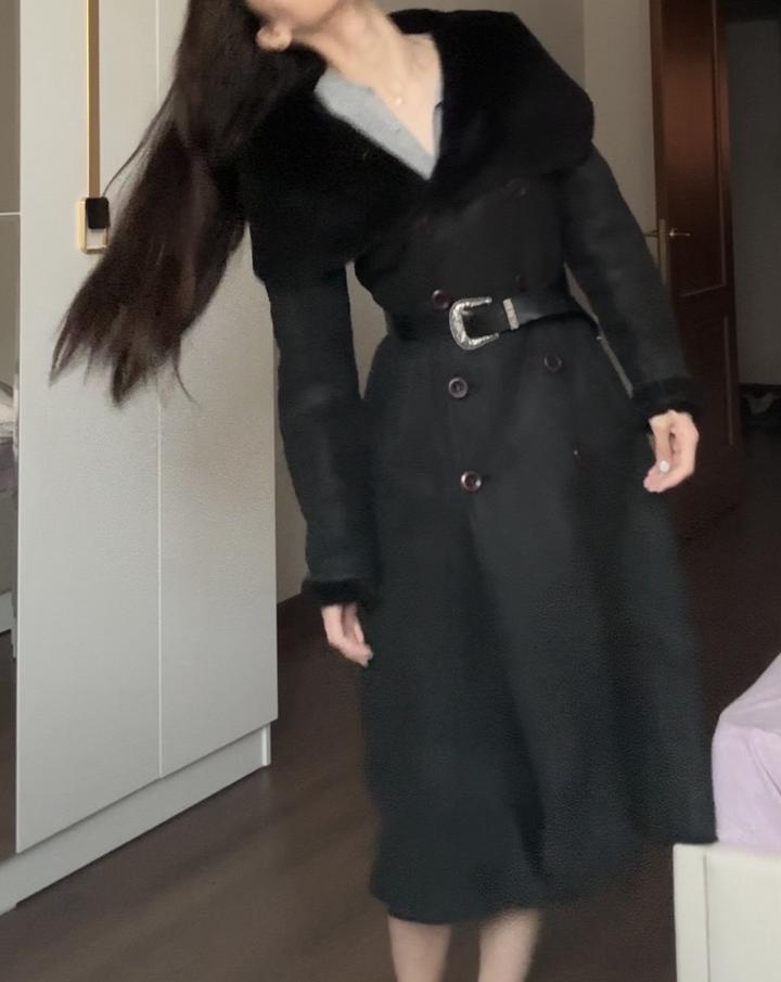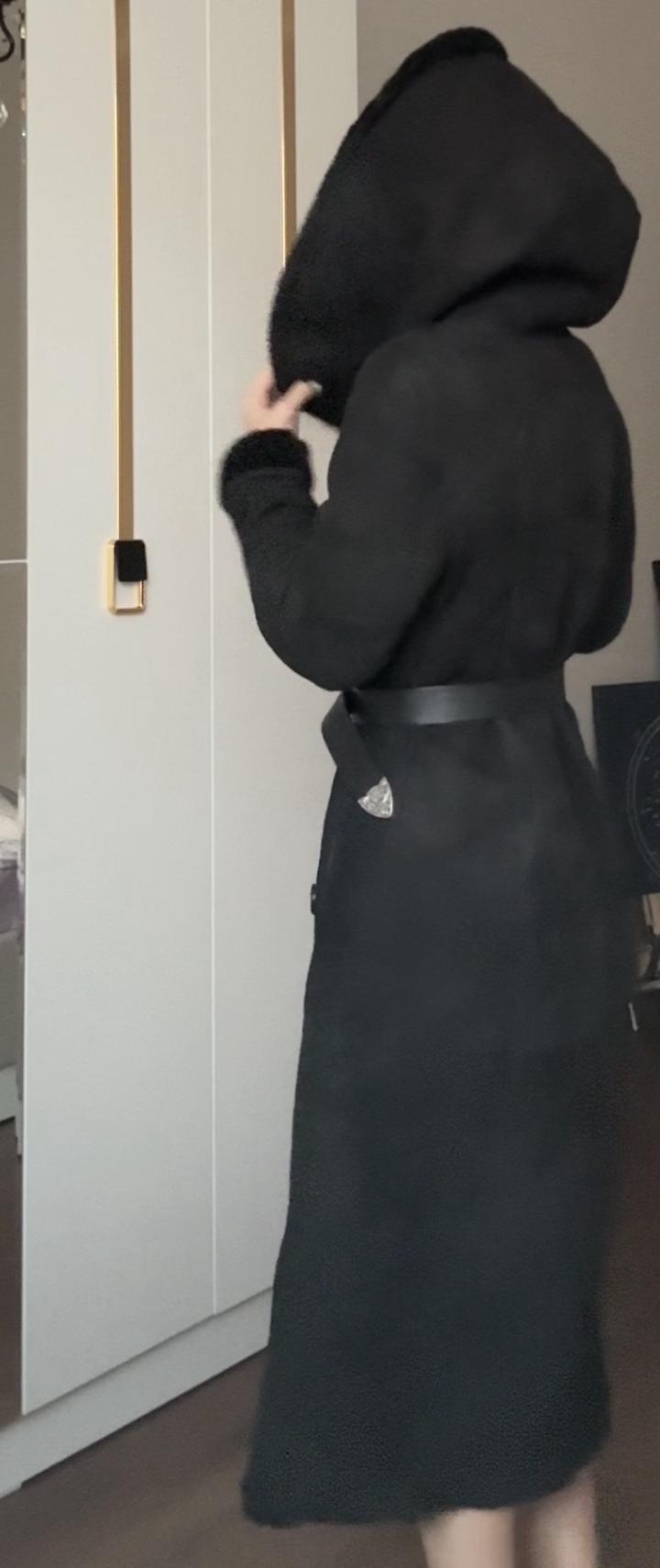 Черная универсальная дубленка, размер ближе к M, я на фото - s/xs ( кэжуал и спортивно выглядит без пояса, можно надеть ремень и получить более классический вид) на M будет сидеть хорошо, на s более оверсайз После химчистки Артикул: 396262