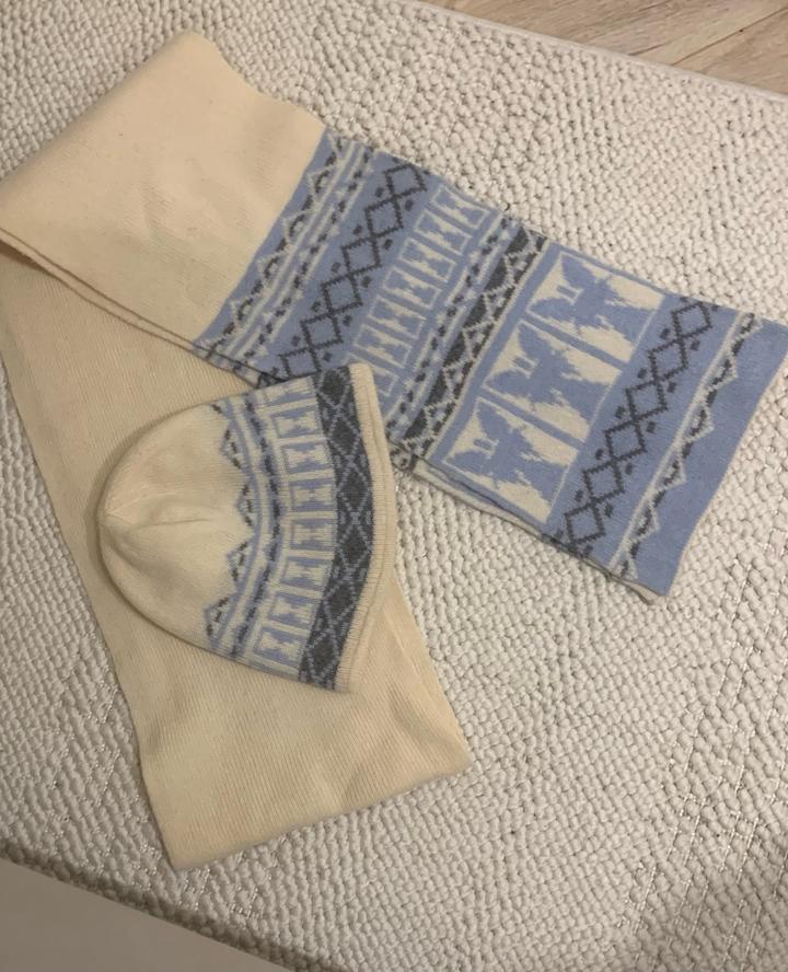 Стильный вязаный комплект в бежево-голубых оттенках со скандинавским орнаментом. Смотрится дорого и аккуратно, легко вписывается в элегантный повседневный образ. Состав: 80% шерсть, 20% нейлон. Тёплый, мягкий, приятный к коже Отличное состояние Подойдёт к пальто и пуховику. Идеальный вариант для холодного сезона Длина шарфа 230 см, ширина 25. Размер шапки 54-56. Артикул: 396466
