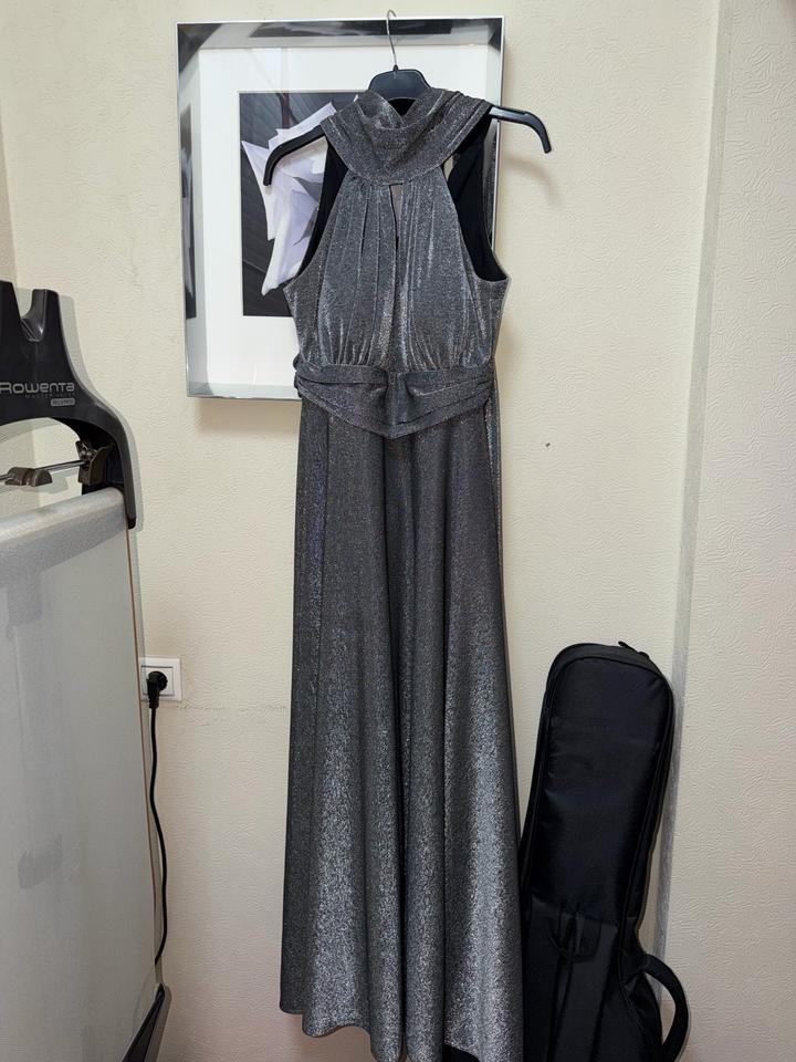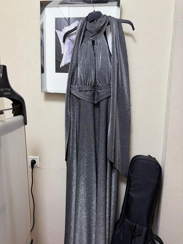 Платье вечернее, очень приятный материал, в носке 1 вечер, после хим чистки продаю. Покупала в форуме за 89.000тг размер 44-46 Артикул: 396886