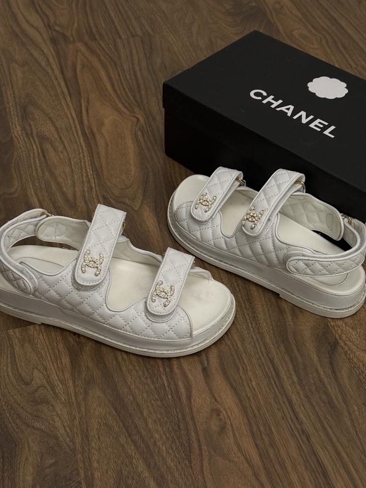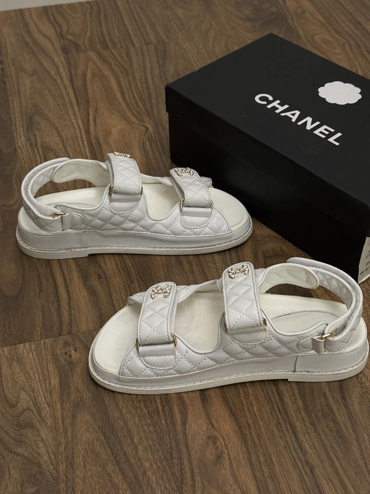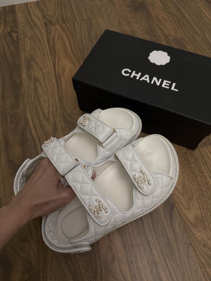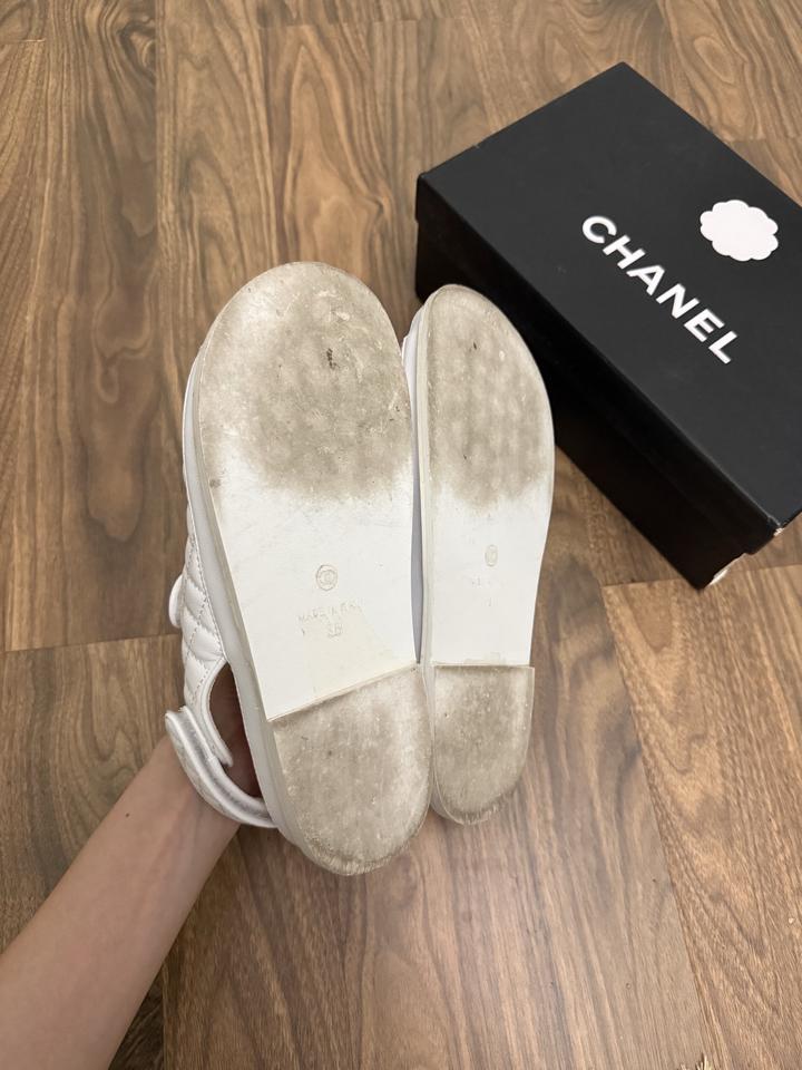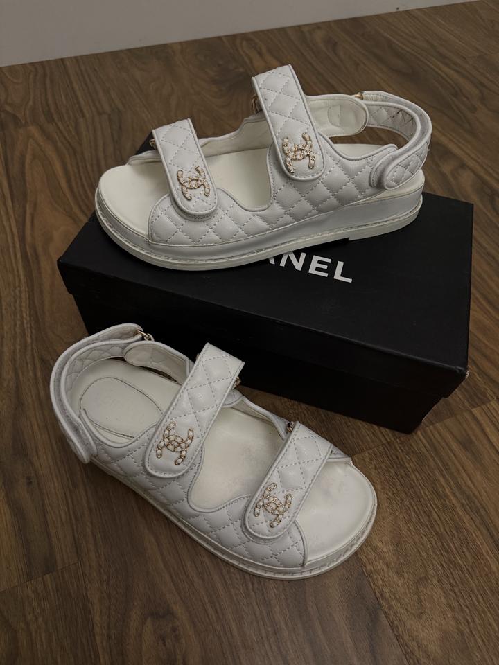 Белые сандалии Chanel. Реплика Носила 1 раз. В хорошем состоянии. Возможно есть следы носки и использования. Все фото живые. Размер 38 На липучках. Можно регулировать. Полная упаковка: коробка , пыльник, документы. На лето самое то. Артикул: 396904