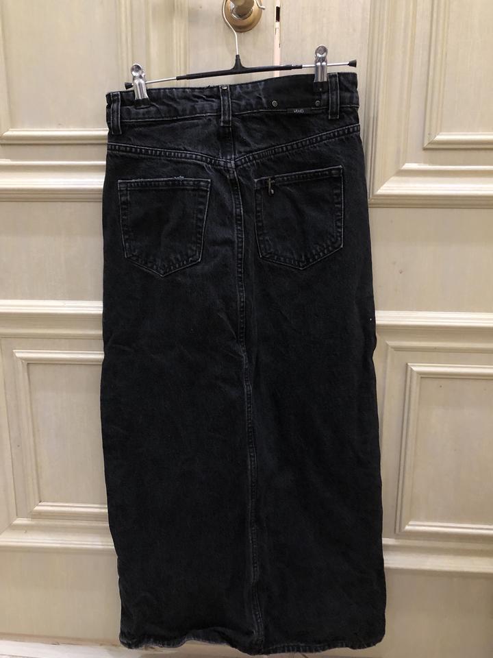 Черная джинсовая юбка миди с разрезом посередине Артикул: 396906