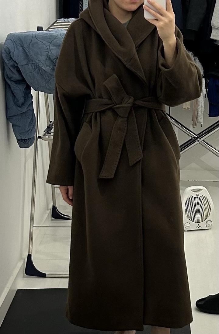 Пальто из смесовой шерсти с капюшоном и длинными рукавами. Передние карманы, подкладка в тон. Пояс из той же ткани. Мне великовато хотя и заказывала чтобы носить как оверсайз. Носила один раз, состояние нового размер m-l Артикул: 397526
