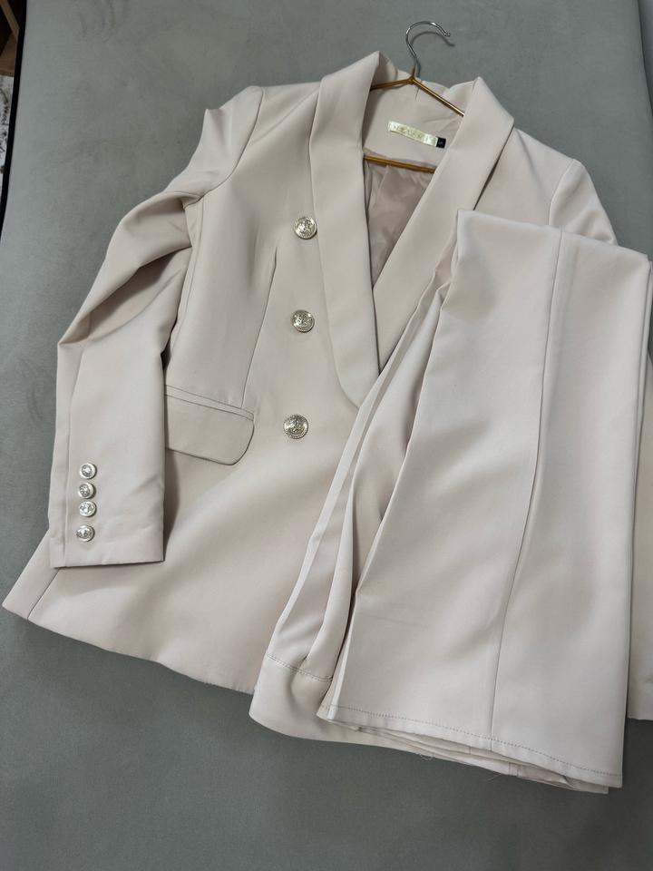 Двубортный брючный костюм. Носилось всего 2 раза. Покупала за 45 000 тг. Артикул: 397627