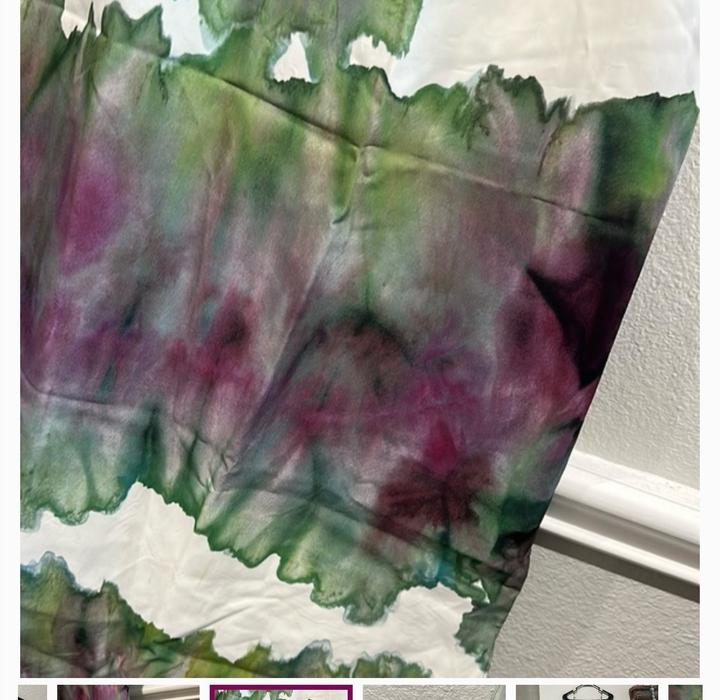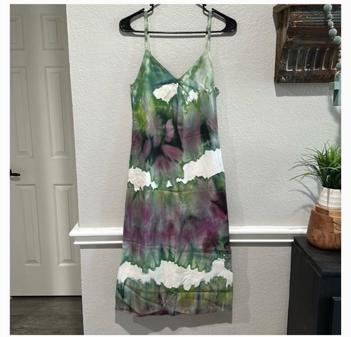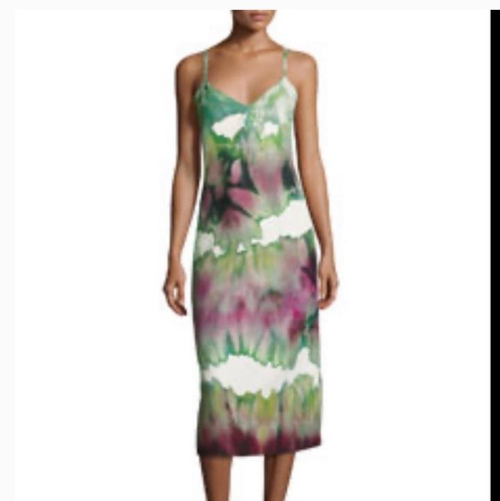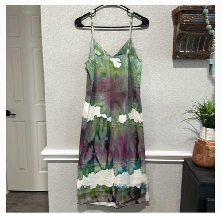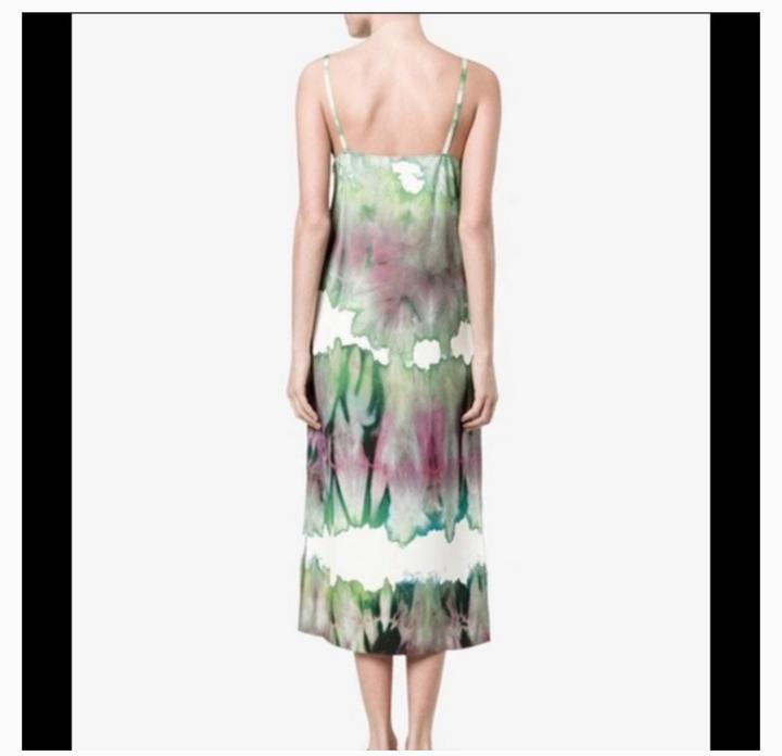 Платье-сорочка с принтом тай-дай Acne Studios. Цвет: белый с зелёными и фиолетовыми акварельными разводами. Застёжка сбоку на молнию и боковые разрезы внизу с обеих сторон. Вытачки на груди. Состояние отличное, надето один раз Состав: 100% вискоза. Артикул: 398339
