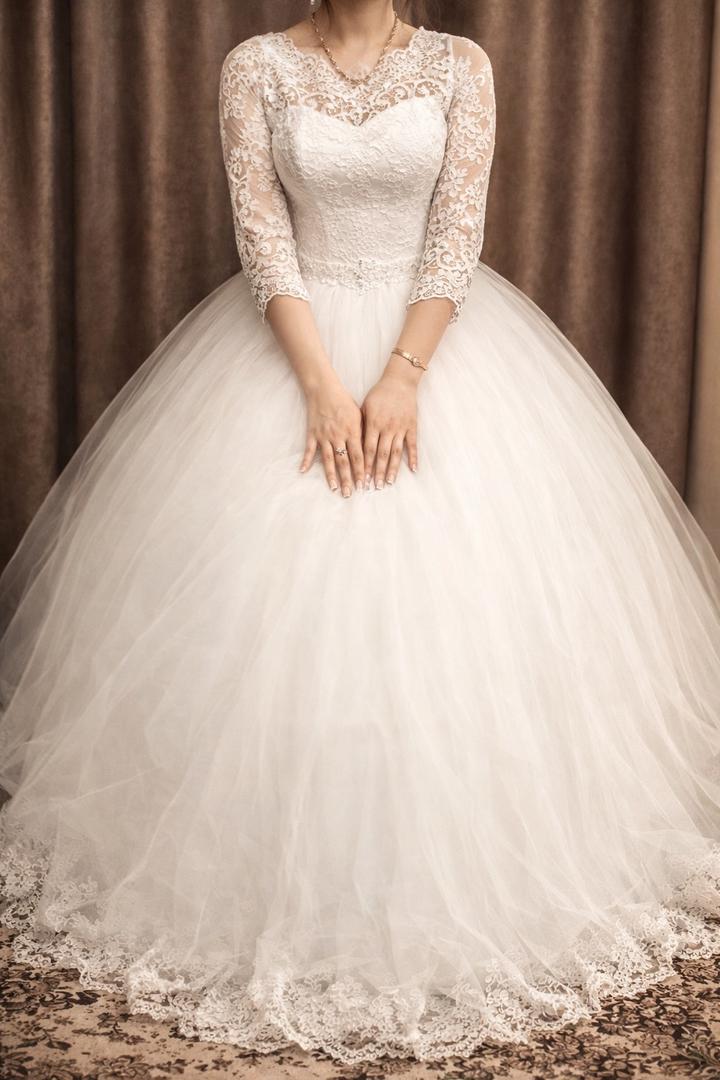 Прекрасное свадебное платье в отличном состоянии на корсете, с пышной фатиновой юбкой и нежным кружевным верхом. Размер 42-44 за счет корсета, можно корректировать. Надето 1 раз, после профессиональной химчистки. В комплекте идет красивая фата. Артикул: 398909