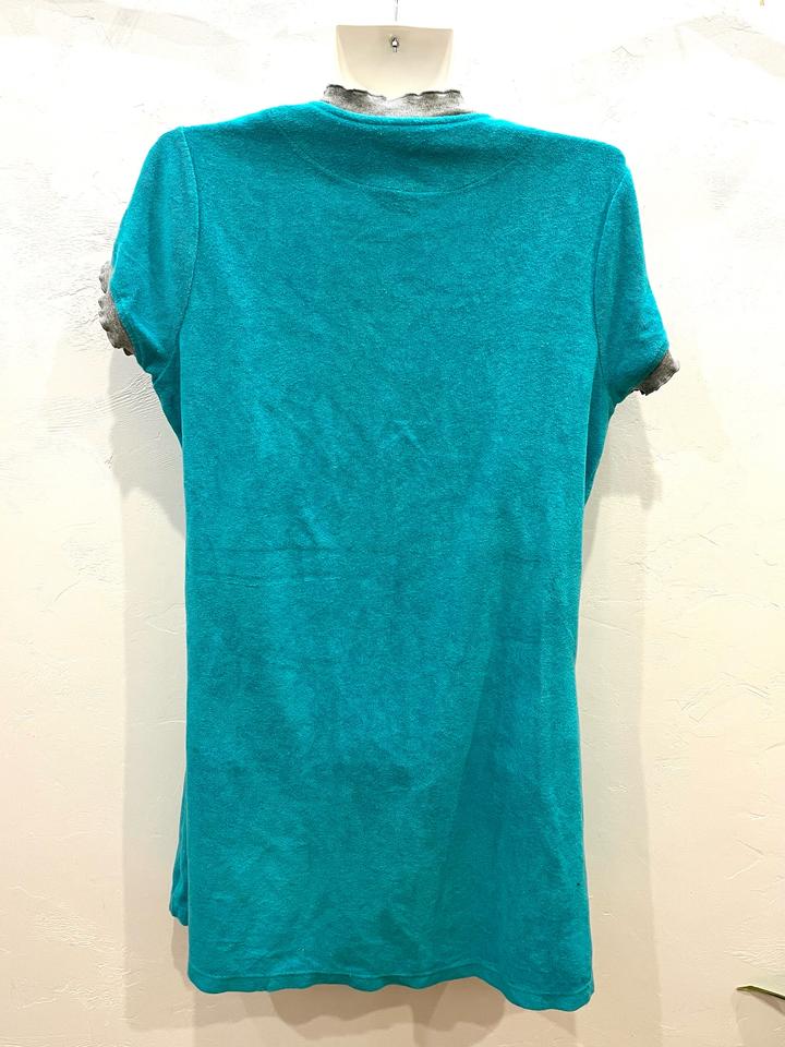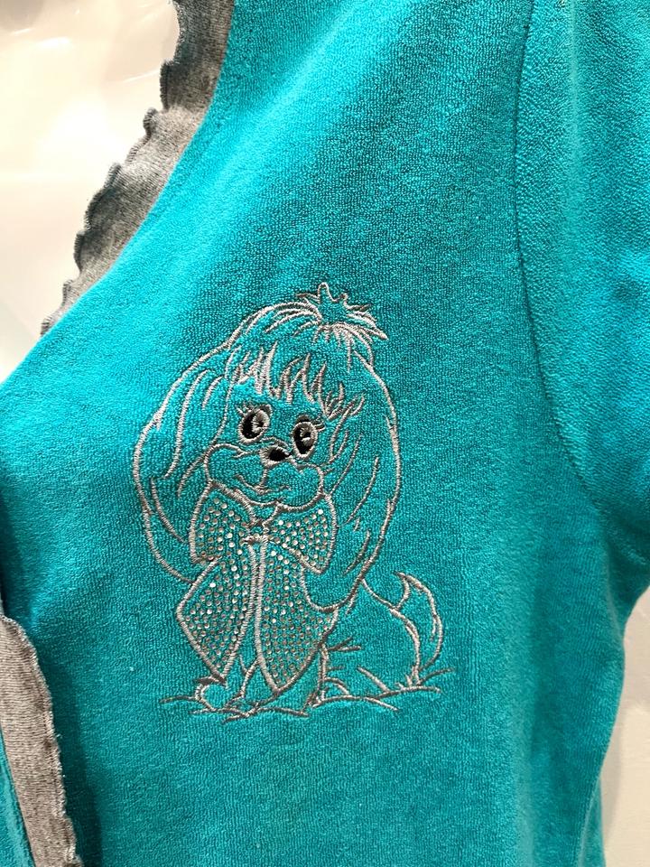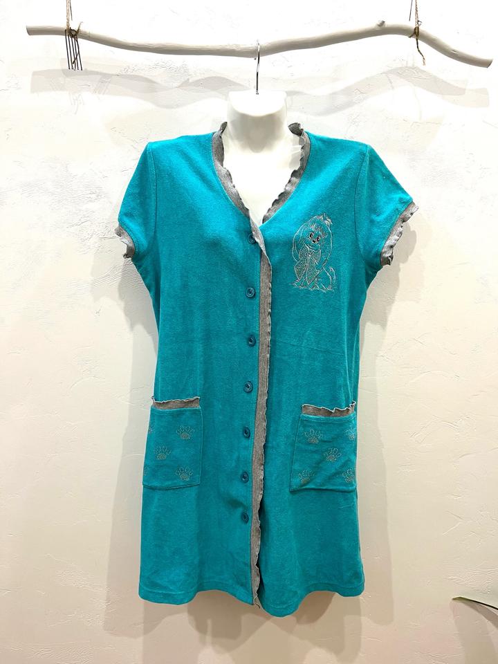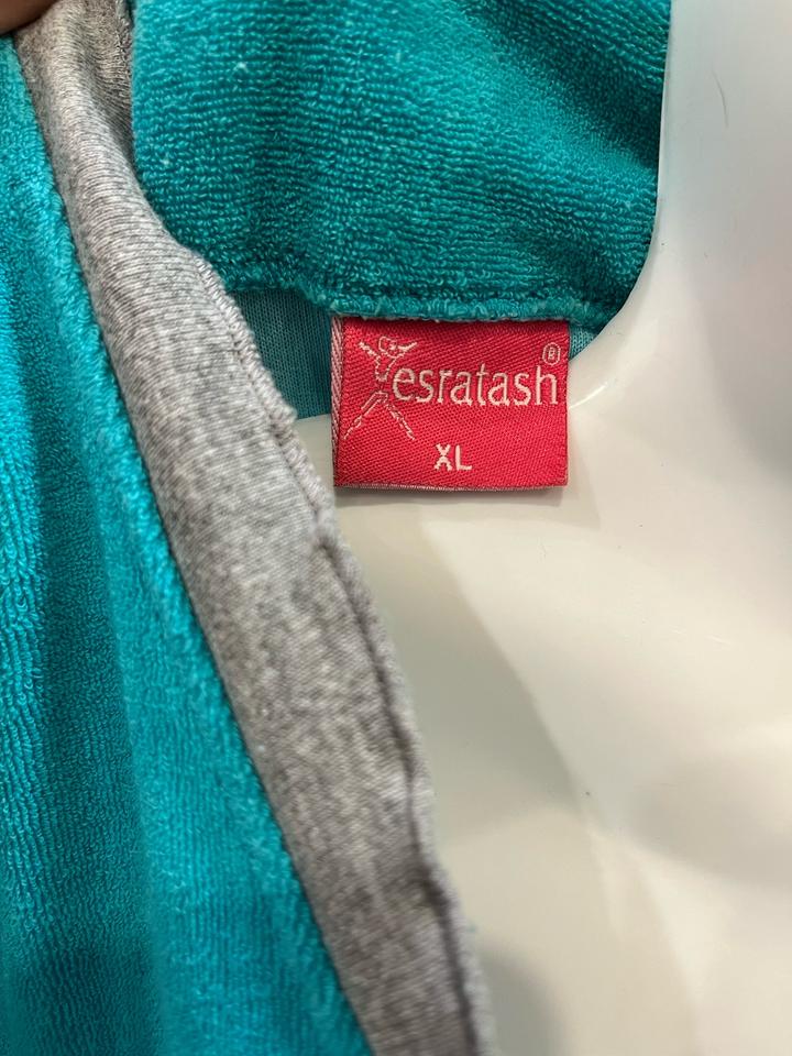 Халат махровый, пр-во Турция,ткань немного тянется. На пуговицах, длина 90 см, размер 48, хотя написано XL. Носила 1 раз. Артикул: 399160