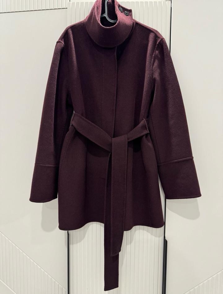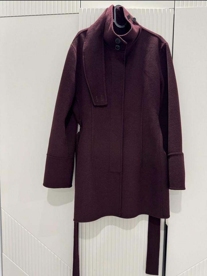 Пальто из шерсти, ручной работы. С поясом и шалью, без подклада в блогородном сливовом оттенке. Рр L Артикул: 399345