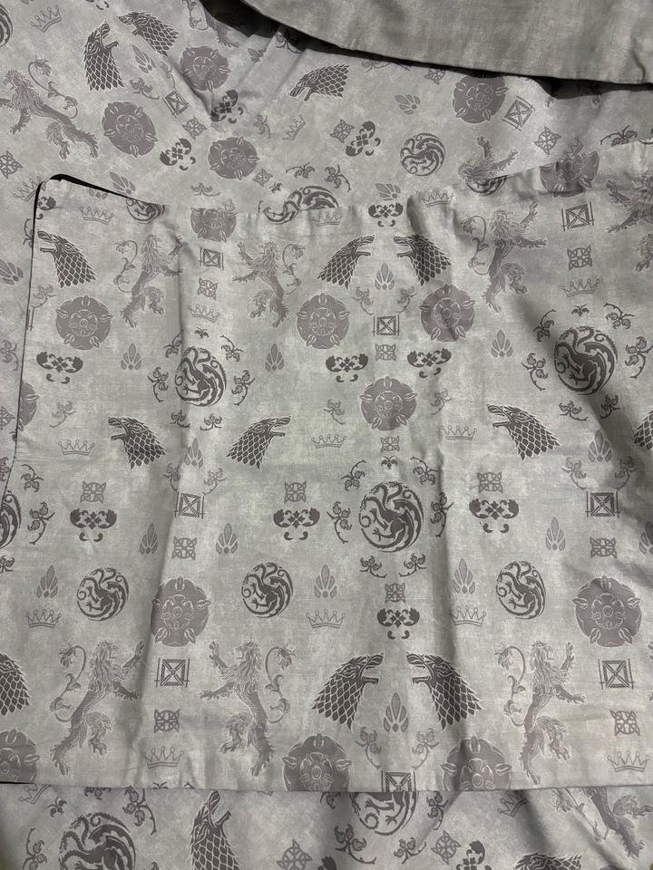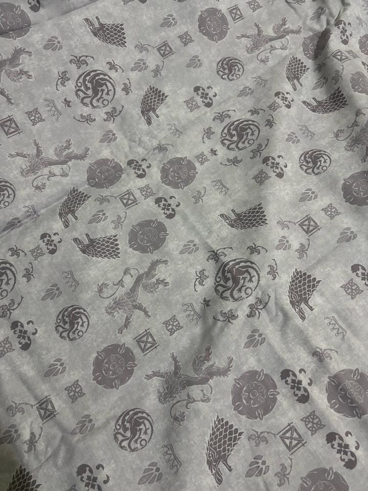 Двуспальный комплект постельного белья по тематике игры престолов, с изображением гербов домов, такой подарок порадует фаната. Состав 60% cotton, 40% polyester Наволочки две шутки +7### ### ## ##см Артикул: 399350
