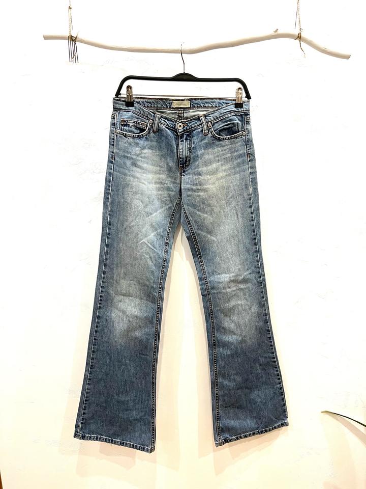 Джинсы клёш, ширина по талии -38 см, длина по боковому шву -108 см. Артикул: 399613