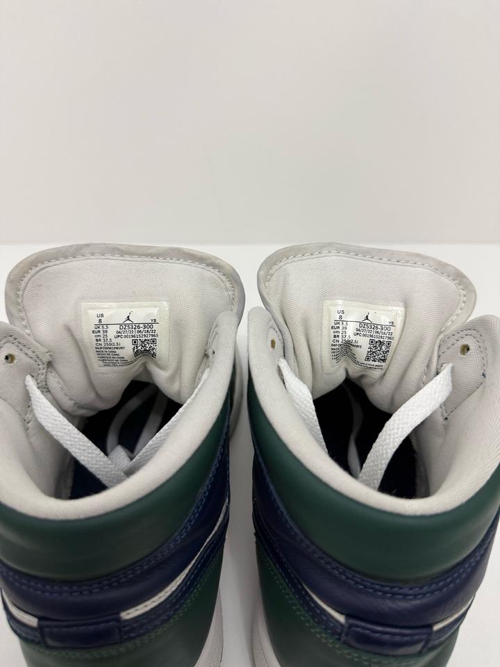 Nike Air Jordan 1 в сине-зеленом цвете, оригинал, заказывала из Америки с официального сайта, кроссовки после химчистки, чистые. Носила редко, в отличном состоянии, без дефектов. С коробкой, unisex Размер - US 8, UK 5.5, EUR 39, 25 см (примерно идет на 38-38,5 размер) Артикул: 399901