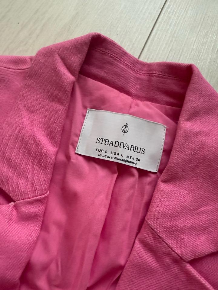 Пиджак Stradivarius розового цвета. Размер L, подходит на S-M если предпочитаете оверсайз. Артикул: 399929