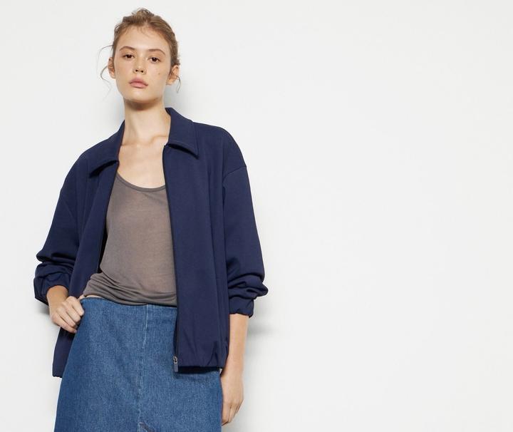 Бомбер из плотного джерси интерлок с гладкой внешней стороной и мягкой изнанкой. Модель с отложным воротником, карманами по бокам, эластичными поясом и манжетами застегивается на молнию. Я ношу размер М-Л. Покупала ХЛ, чтобы сидела как оверсайз ( купила 39 тыс) Артикул: 400086