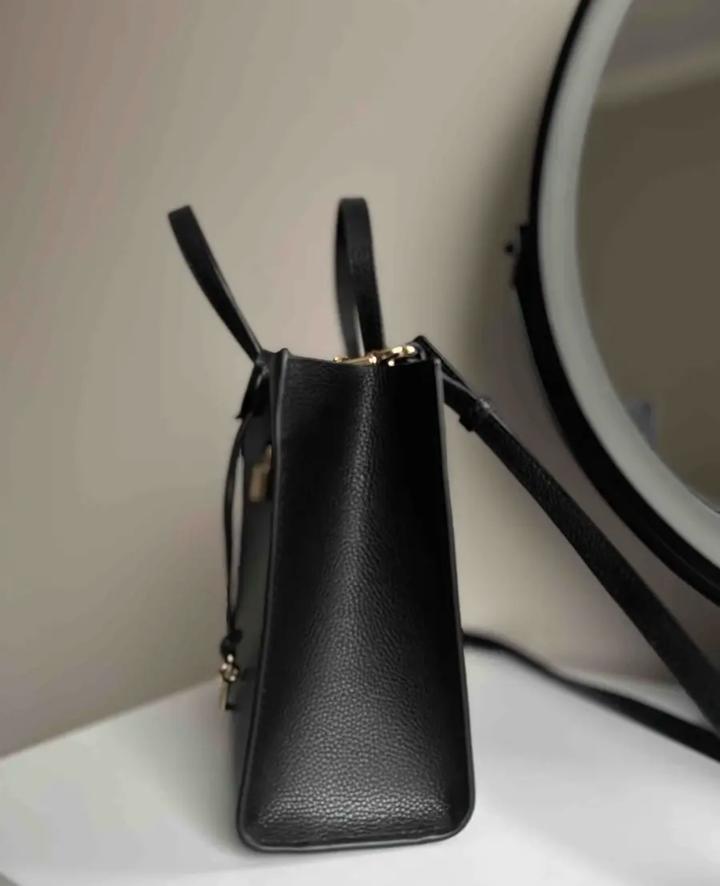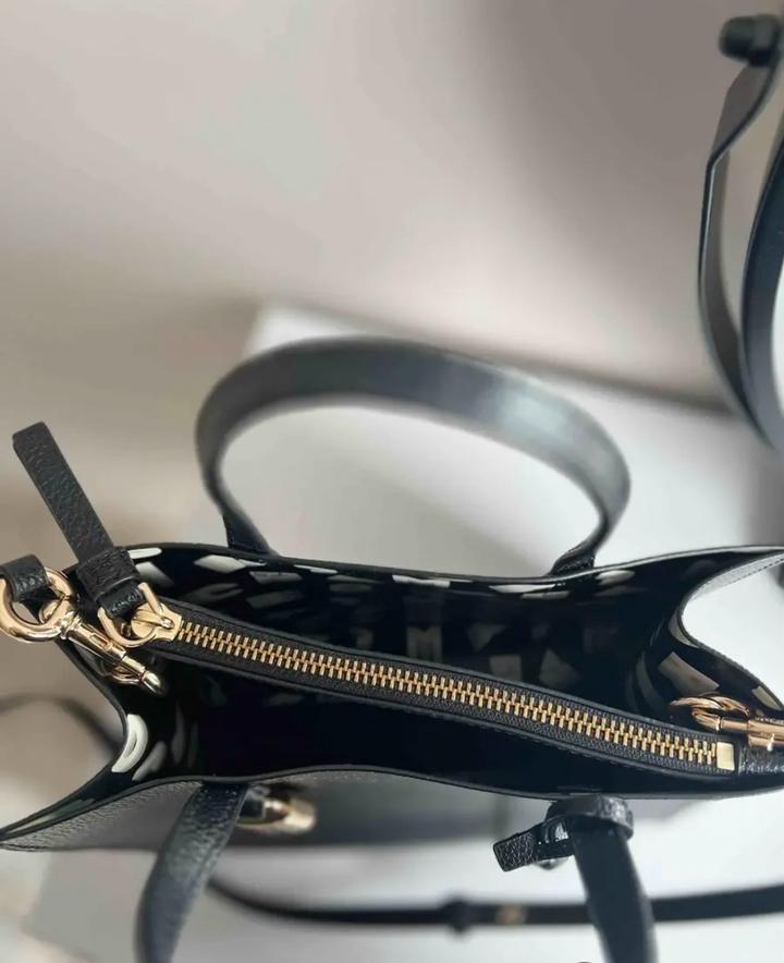 Сумка из натуральной зернистой кожи, отличается элегантным стилем. В отличном состоянии, приобреталась в магазине Momsbox.kz. Асимметричные внутренние отделения, центральный карман на молнии. Двойные ручки сверху 8.8 см и съемный регулируемый ремешок. Высота: 23 см Ширина: 20 см Глубина: 10 см Артикул: 401172