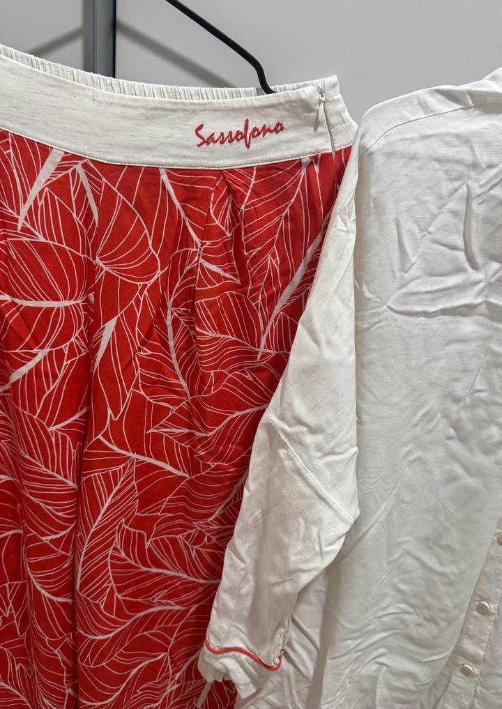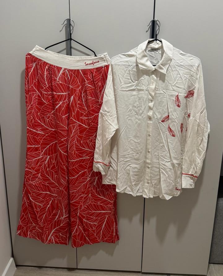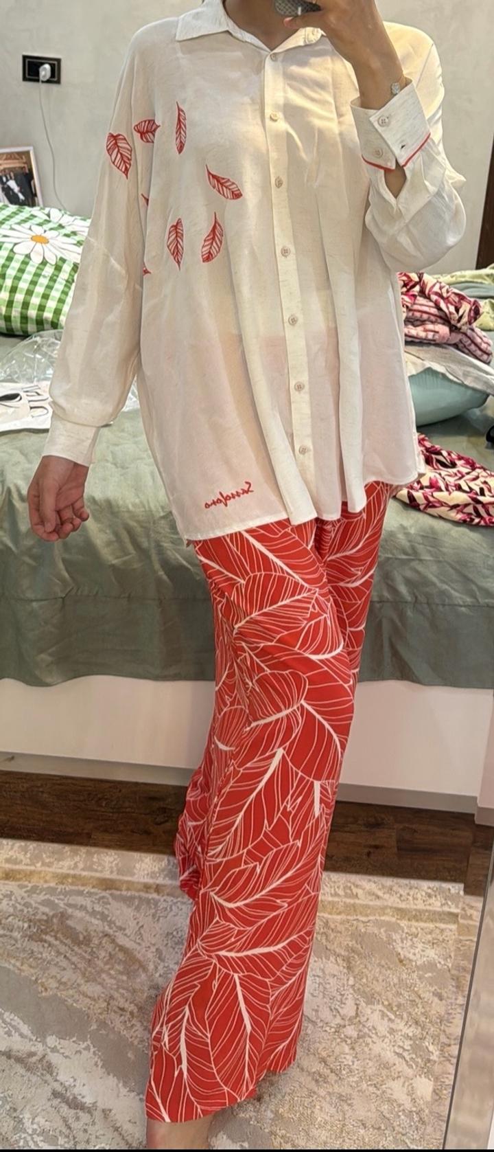 Двойка Sassofono, размер 38(+6) Рубашка изо льна, штаны из штапеля. Материал при стирке не садится, носила пару раз, в идеальном состоянии. Производство Турция Артикул: 401351