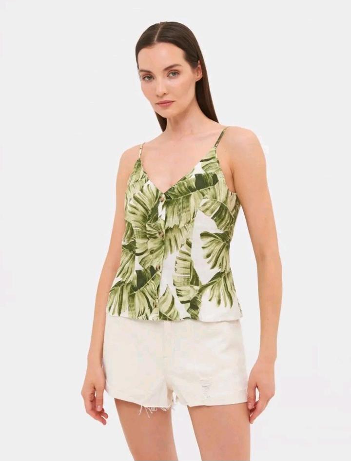 Продам летний топ H&M размер XS из 100% льна Модель с узкими регулируемыми бретельками, V-образным вырезом спереди и сзади, застёгивается на пуговицы. Топ лёгкий, дышащий, идеально подойдёт для лета. Артикул: 401466