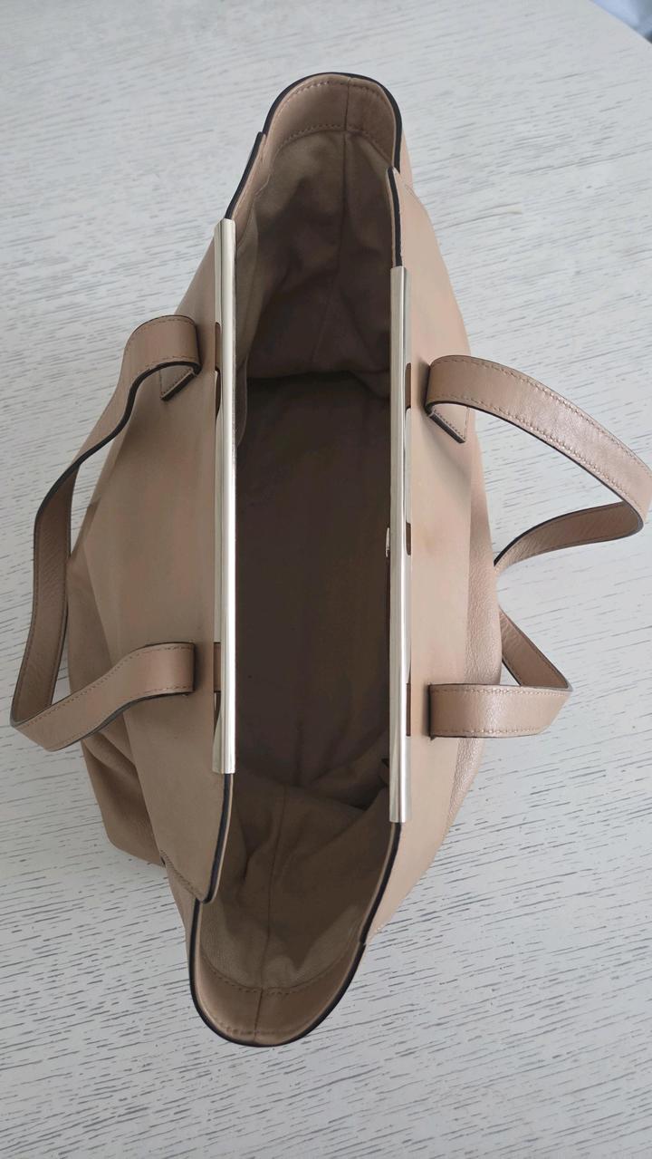 Сумка из гладкой мягкой кожи, красивого бежевого цвета, бренда Coccinelle. Б/у в хорошем состоянии. Фурнитура золотистая. Размеры 40смх27см. Артикул: 401552