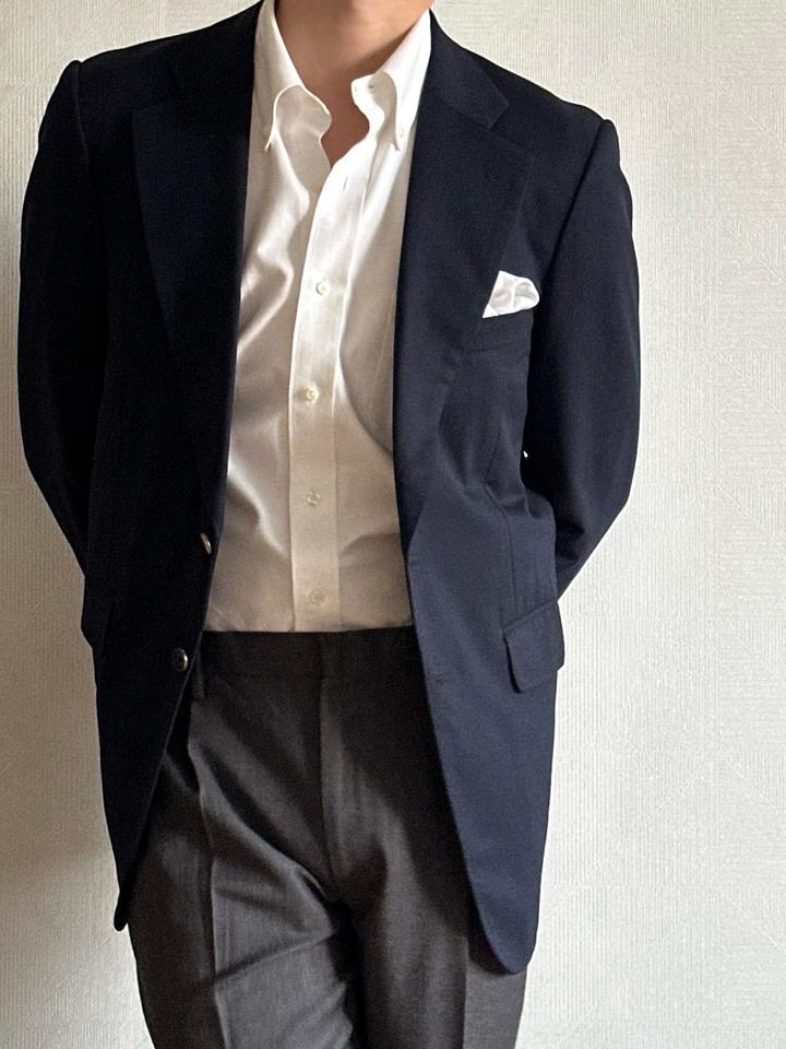 Элегантный темно-синий пиджак из шерсти. Приталенный крой, широкие лацканы и миланская петля. До 175см роста. Made in Japan Артикул: 401863