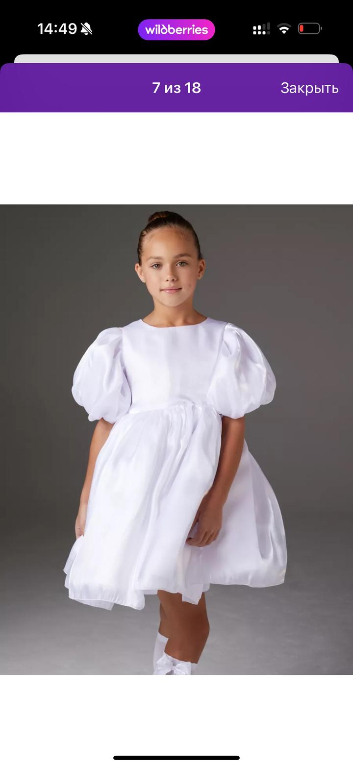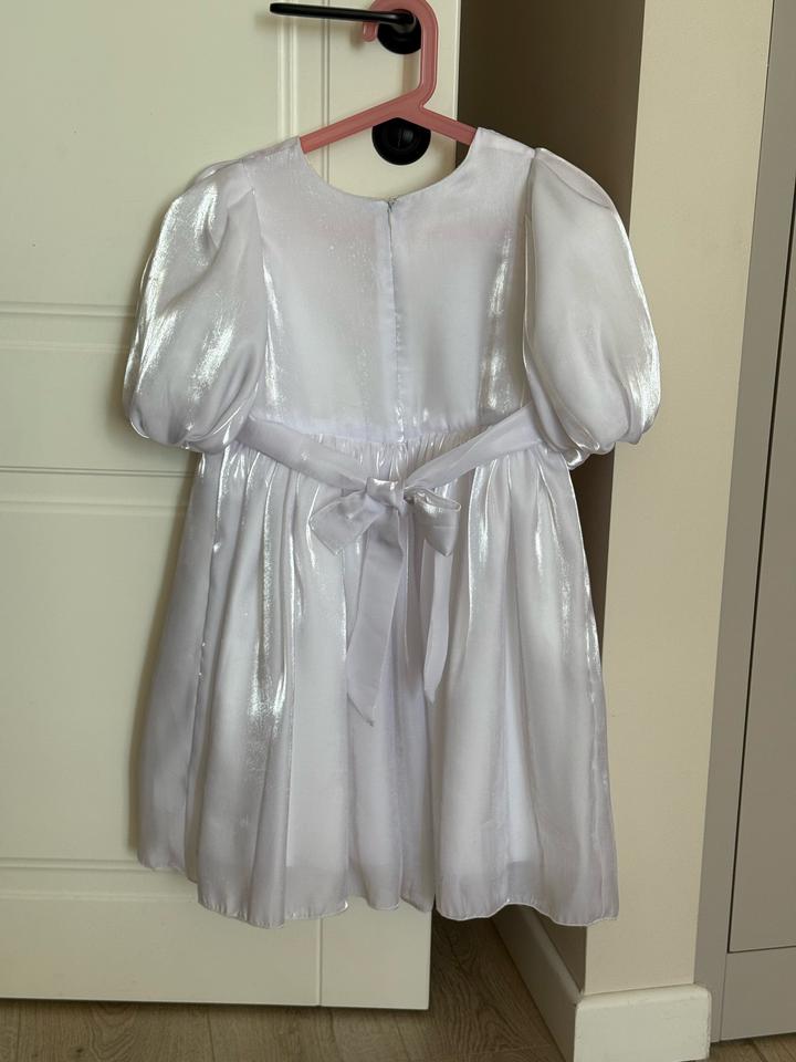 Белое платье для девочки, 1 раз в носке на новогодний утренник. Идеальное. Смотрится шикарно. Удобное. Артикул: 401909