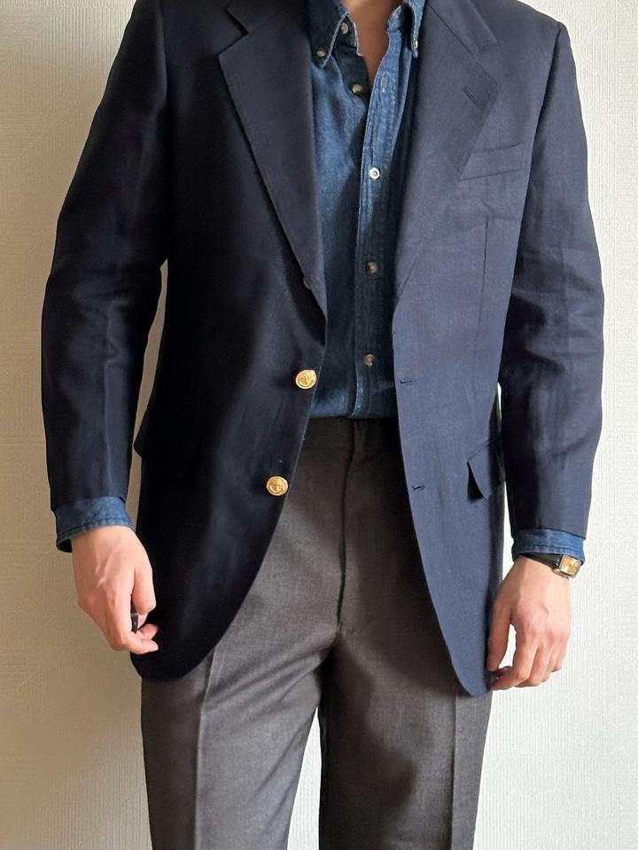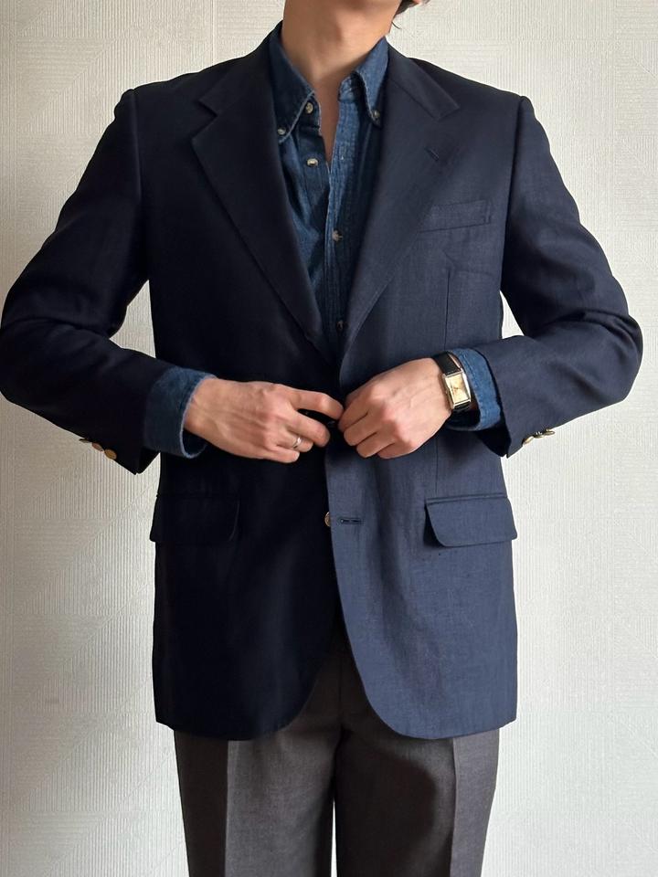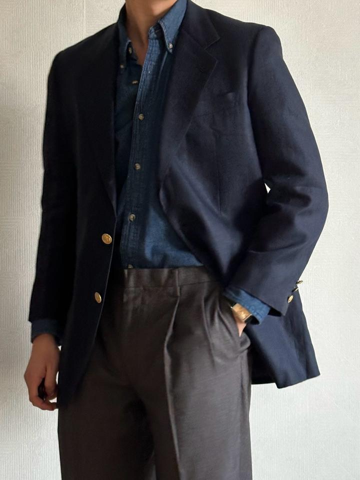 Красивейший темно-синий блейзер из конопли.Аккуратная посадка, широкие лацканы и миланская петля. До 175 см роста. Made in Japan 🇯🇵 Артикул: 401914
