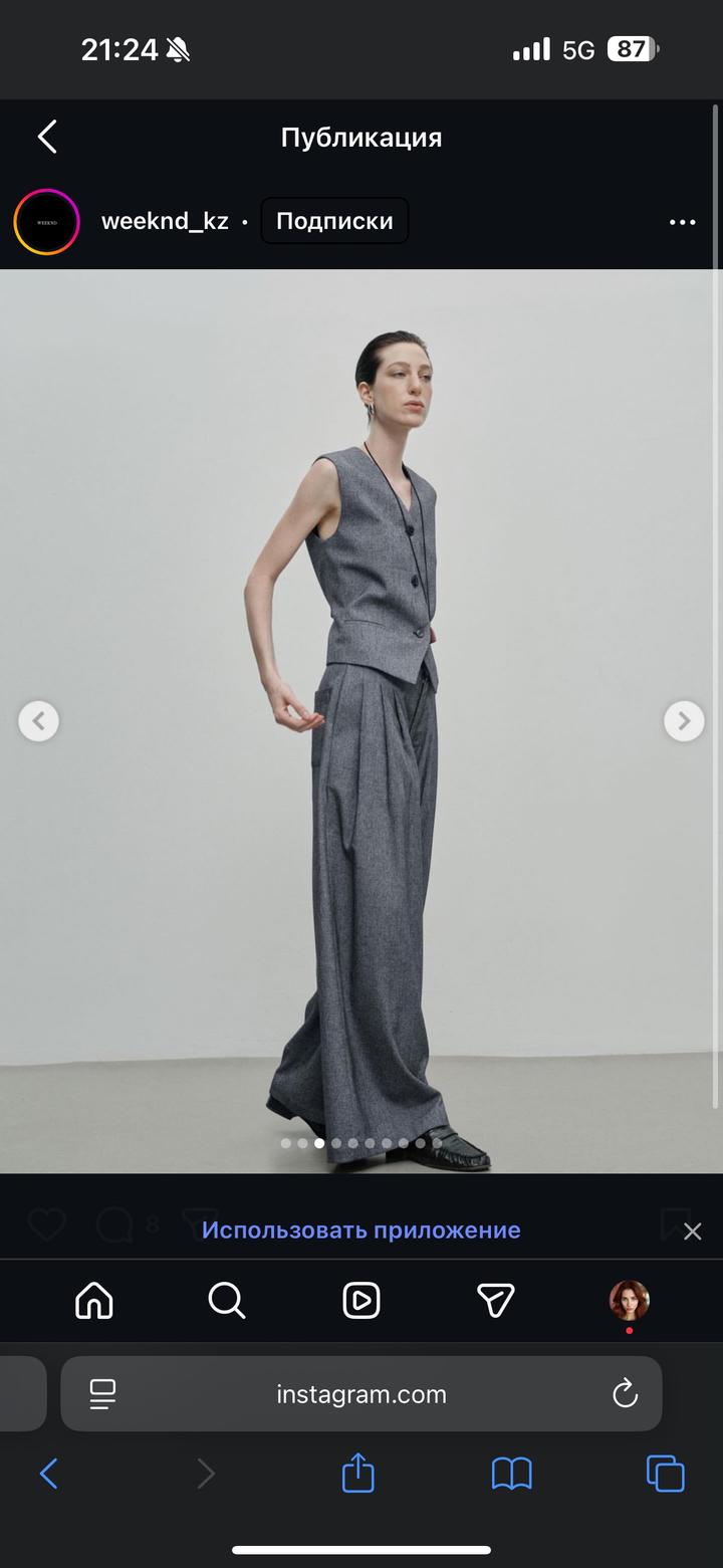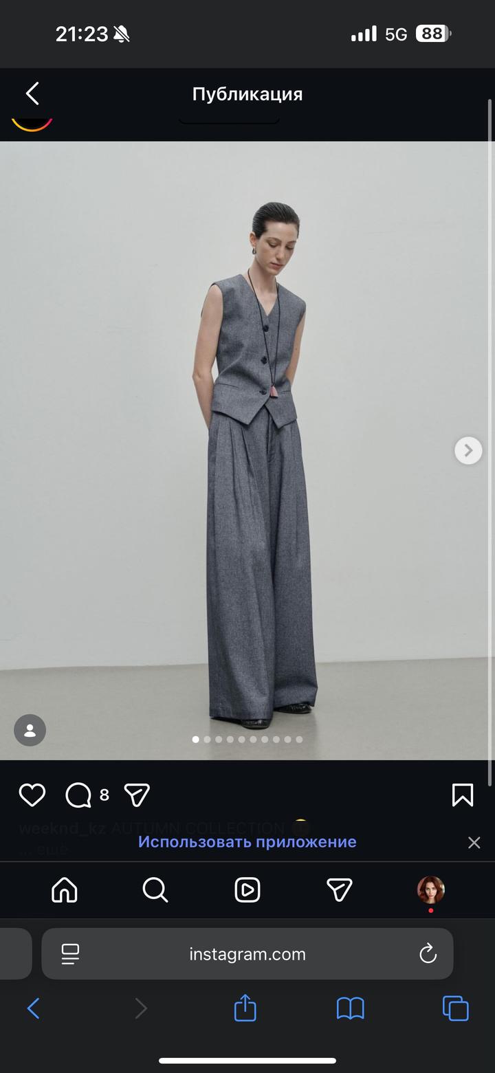 Брюки от фирмы Weekend . Расклешенные, очень стильные. Состояние отличное. Размер S-M. Район: Жарокова-Сатпаева Артикул: 402212