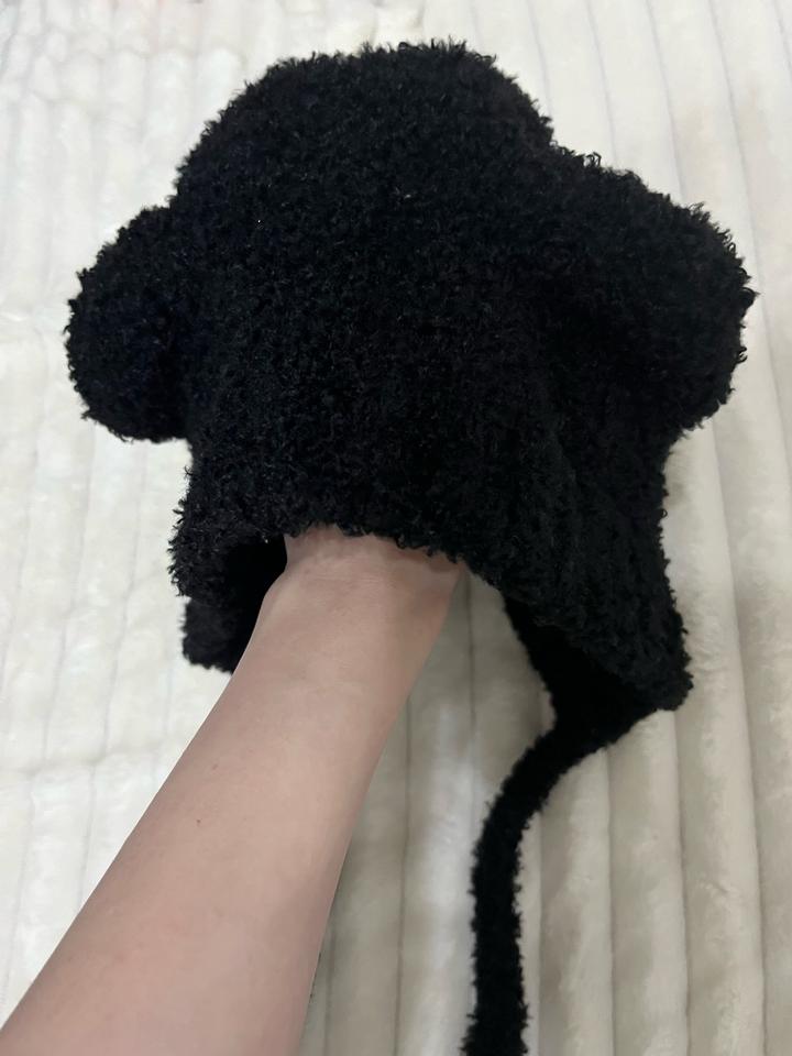 Черная шапка с ушками мишки, на завязке Артикул: 402249