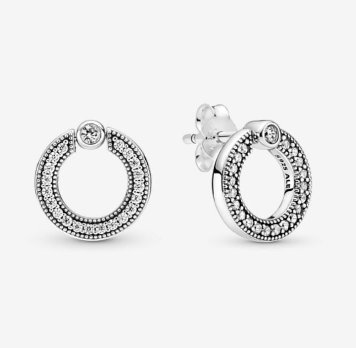 Универсальные двусторонние серьги-пуссеты Выполнены в виде двусторонней окружности, в центре цирконий. Круг усыпан прозрачными кубическими циркониями с одной стороны и украшен логотипом Pandora с другой. Круг можно переворачивать, меняя сторону с камнями паве на полированную поверхность с логотипом. Серебро 925 Новые, в комплекте коробка белая от серег и подарочная с розовым бантом, Брендированный пакет. Паспорт с датой покупки 25. 12. 2025 Артикул: 402587