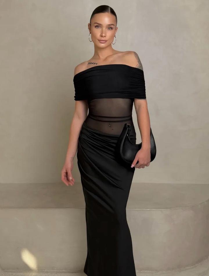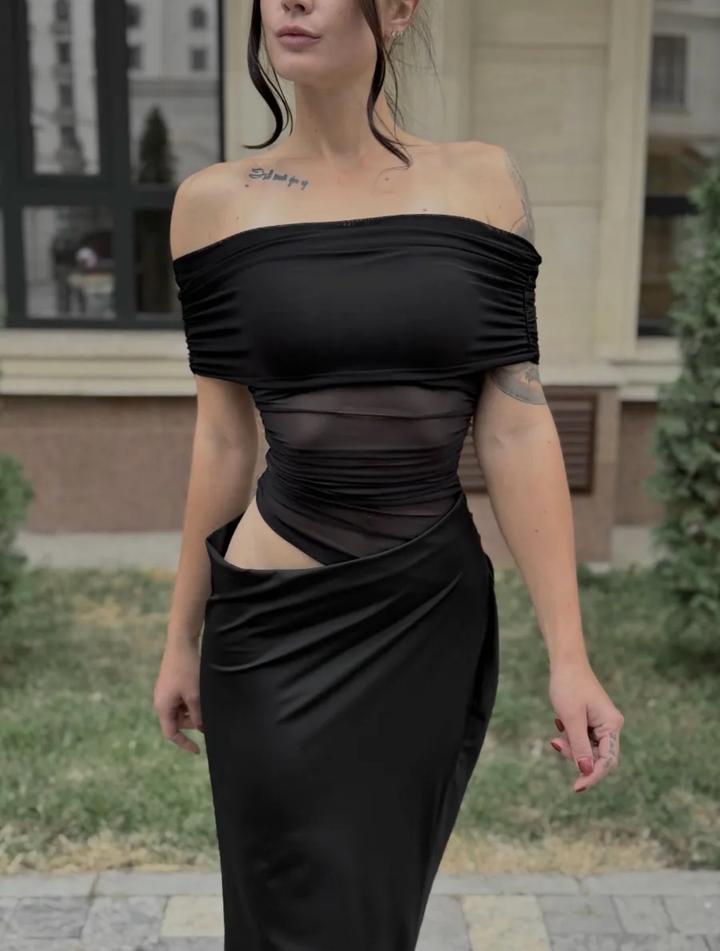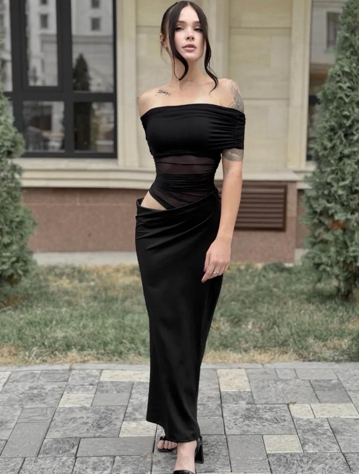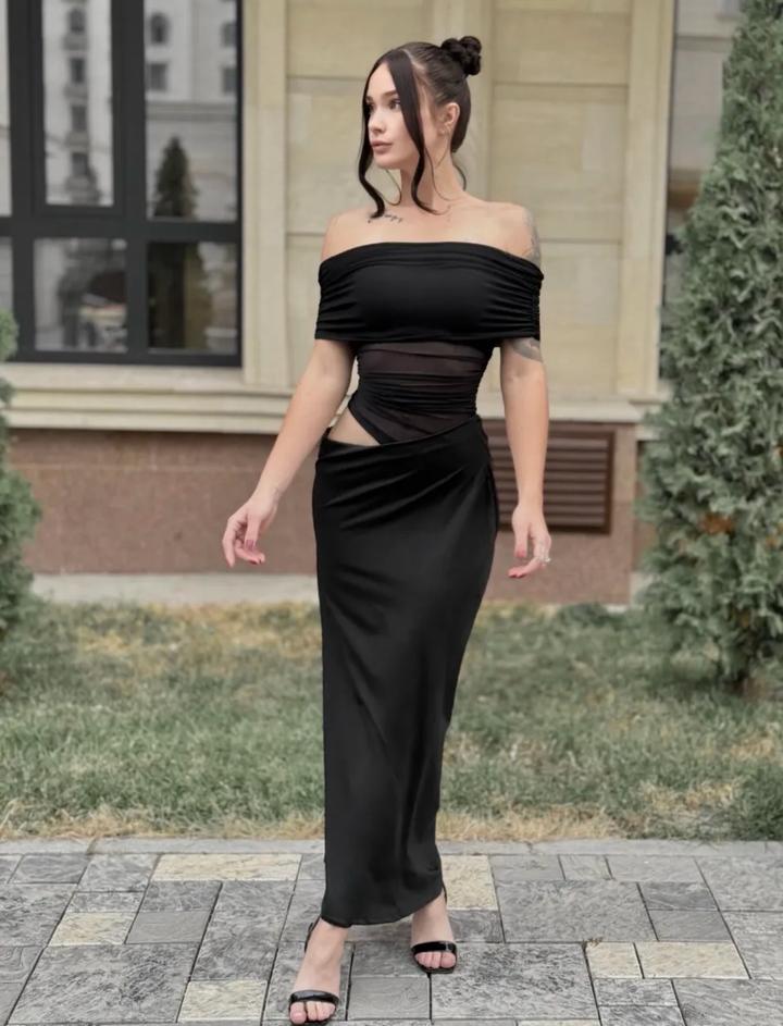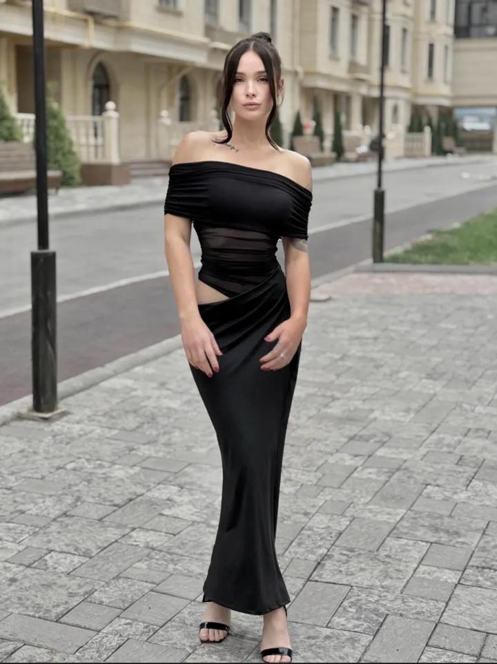 Рост модели на фото метр-семдесят.Платье женское вечернее, топ боди с открытыми плечами и спиной, с короткими прозрачными рукавами.Длинное и в тоже время облегающее, однотонное платье. Зона живота выполнена в виде прозрачной сетки.Купила для фотосессии,но не подошло для образа. Артикул: 402666