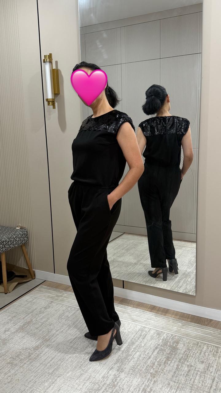 Черный комбинезон черного цвета в отличном состоянии Турецкого производства , можно носить как говорится и в пир, и в мир . Ткань отличная , не мнущаяся. Одевался не много 2-3 раза Артикул: 402880