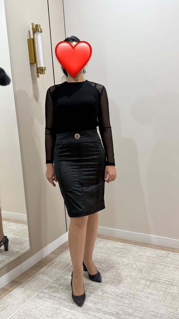 Черная юбка ( офисная) ткань шикарная под кожу , не мнется , новая с биркой Турция Артикул: 403015