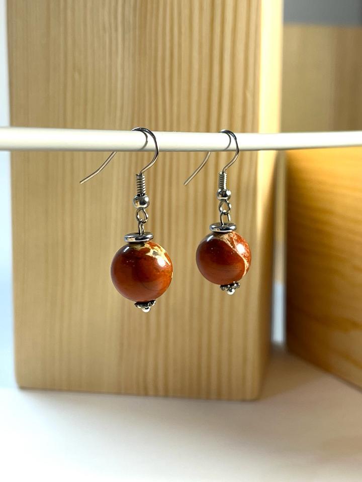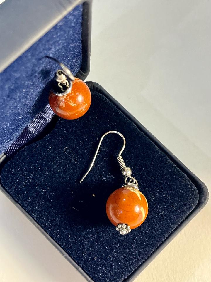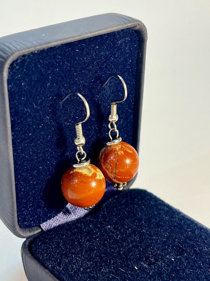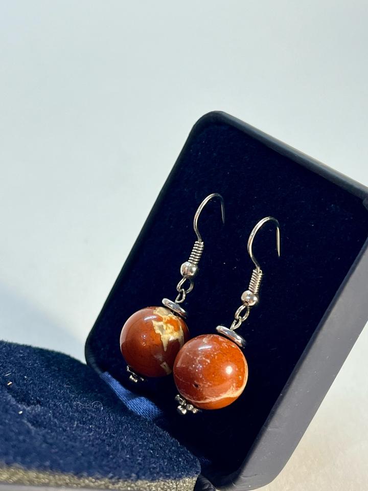 Серьги с натуральным камнем-Красная яшма.Швензы серебряные. Новые. Артикул: 404013