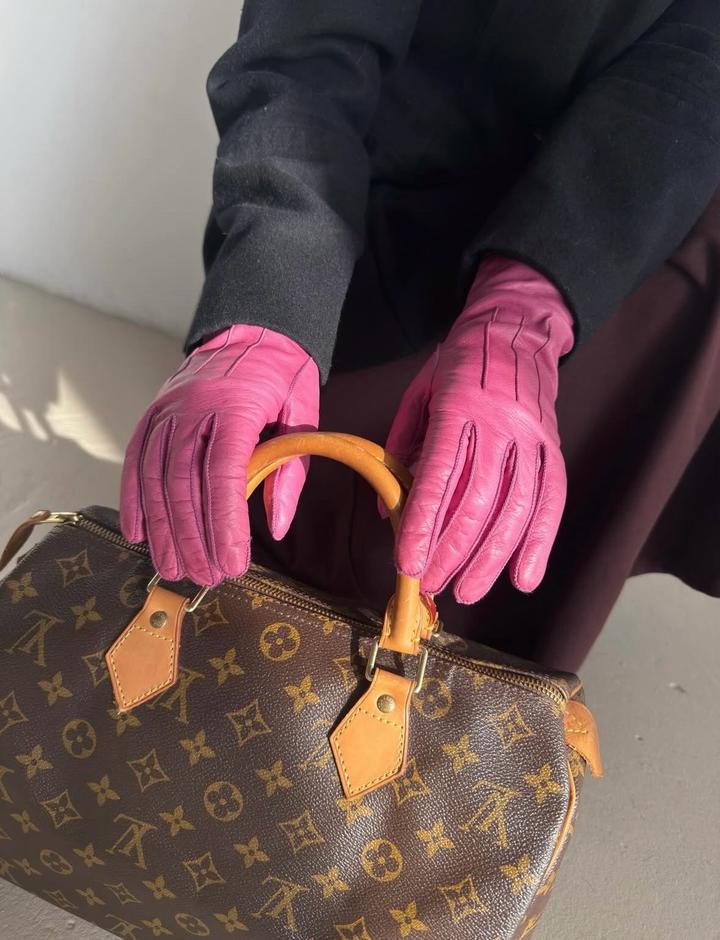 Акцентные кожаные перчатки Coach 🩷 Длина 26 см Артикул: 404060