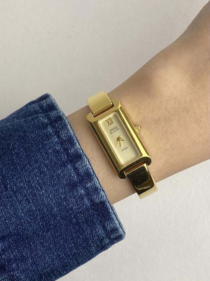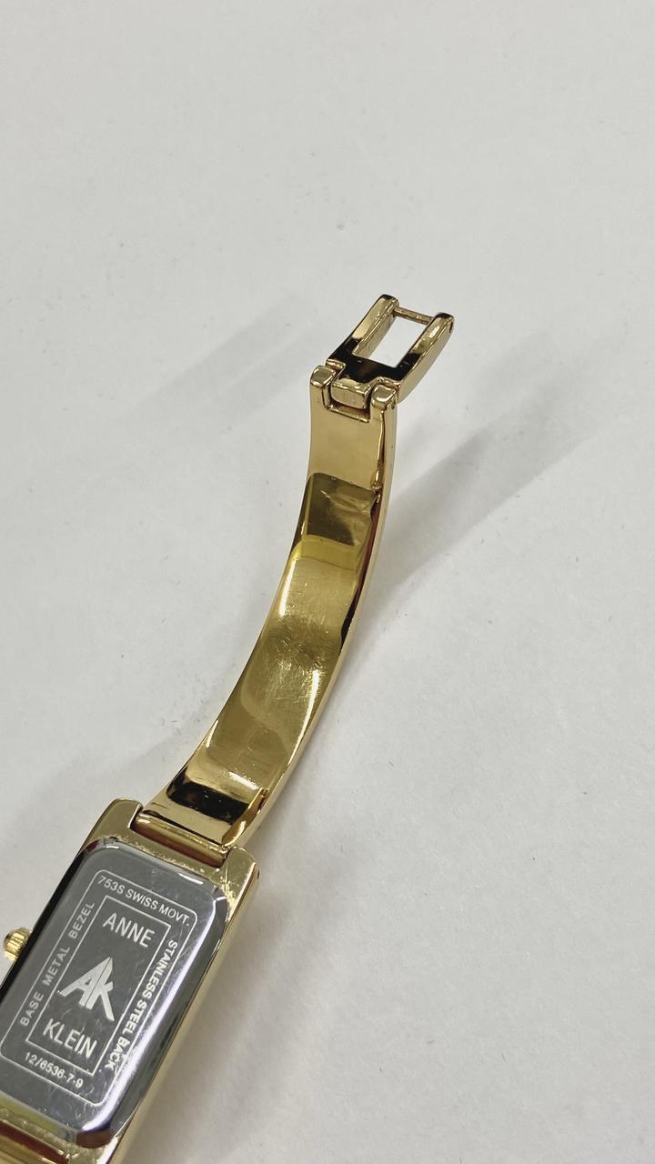 Anne Klein • сделаны в Швейцарии • швейцарский кварцевый механизм (на батарейке) • нержавеющая сталь покрытая гальваническим золотом корпус - 15 мм браслет - 16 см (звенья съемные, можно регулировать под свое запястье) Артикул: 404352