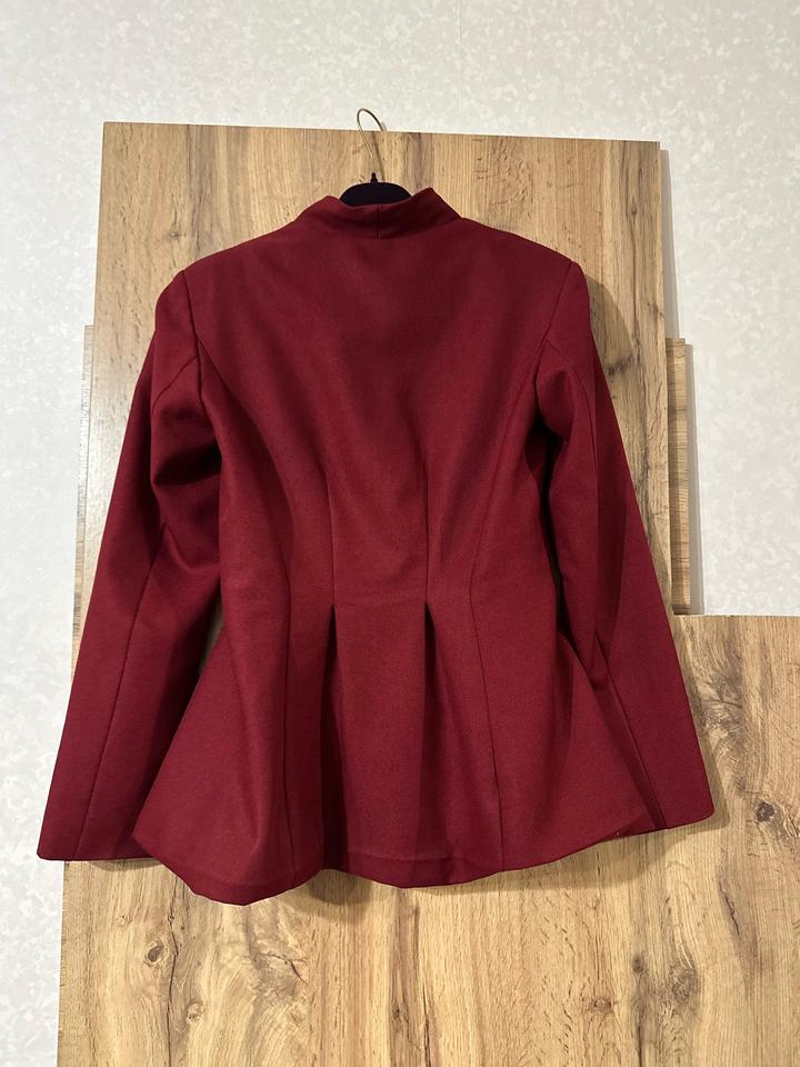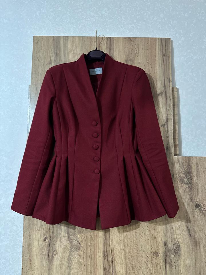Элегантный жакет насыщенного бордового цвета. Приталенный крой с красивыми вытачками и мягким расклёшем по низу подчёркивает фигуру. Плотная, хорошо держащая форму ткань. Отлично подойдёт для офиса, мероприятий и стильных повседневных образов. Артикул: 404646