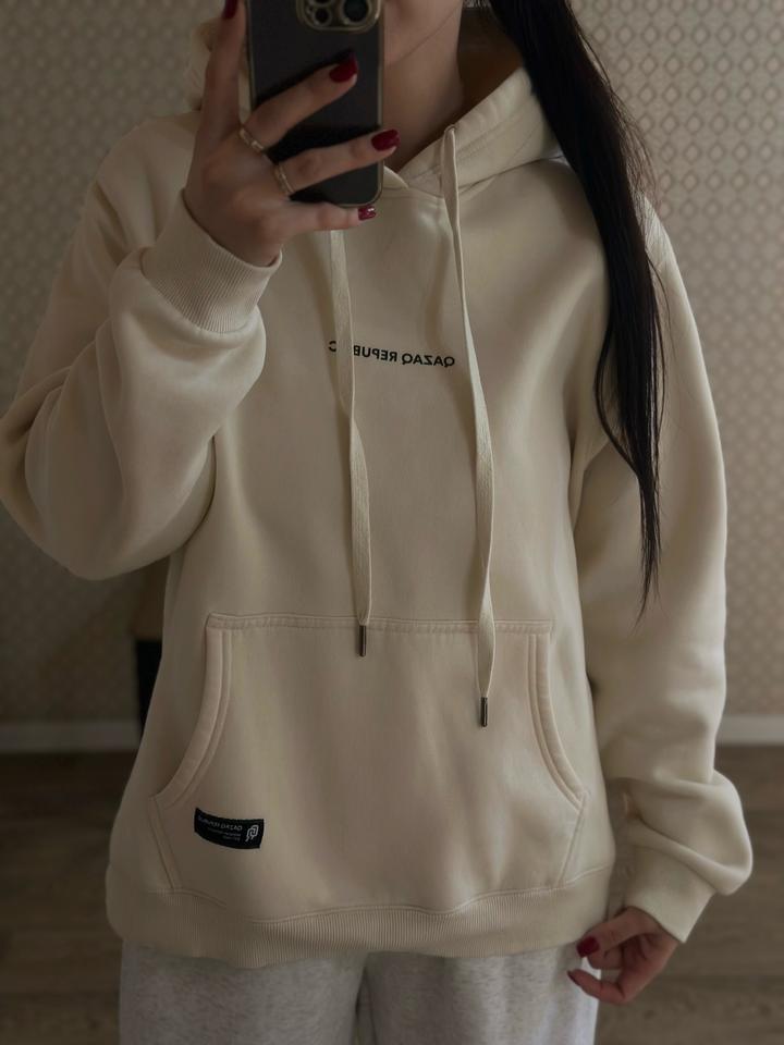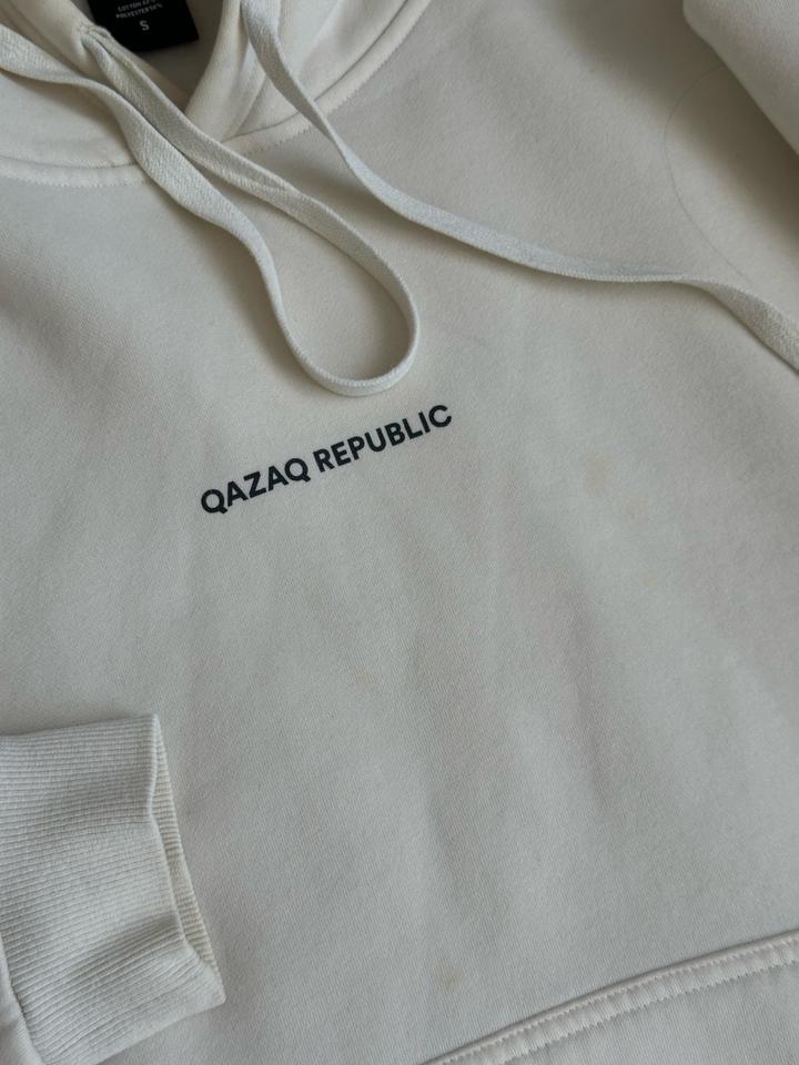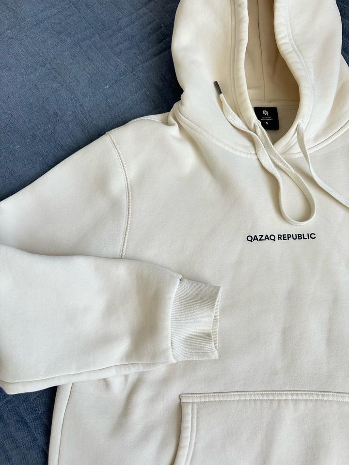 Толстовка Qazaq Republic. В сливочном цвете. Размер мужской S. Модель унисекс,оверсайз. подойдет и для мужчин и для девушек. Есть небольшие пятна, указала на фото Артикул: 406008