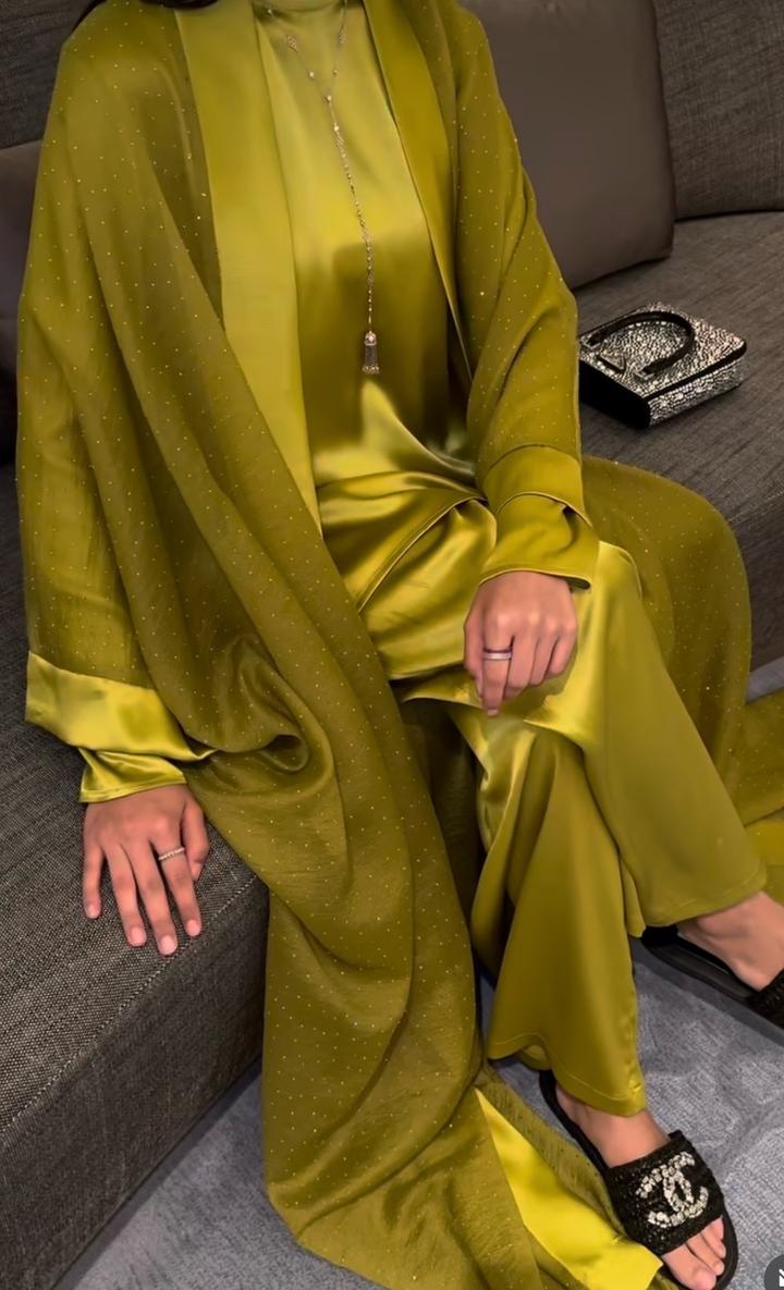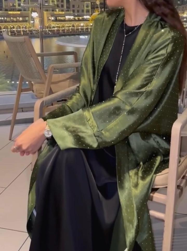 Абайка со стразами в оливковом цвете размер до 48. Состояние отличное Артикул: 406306