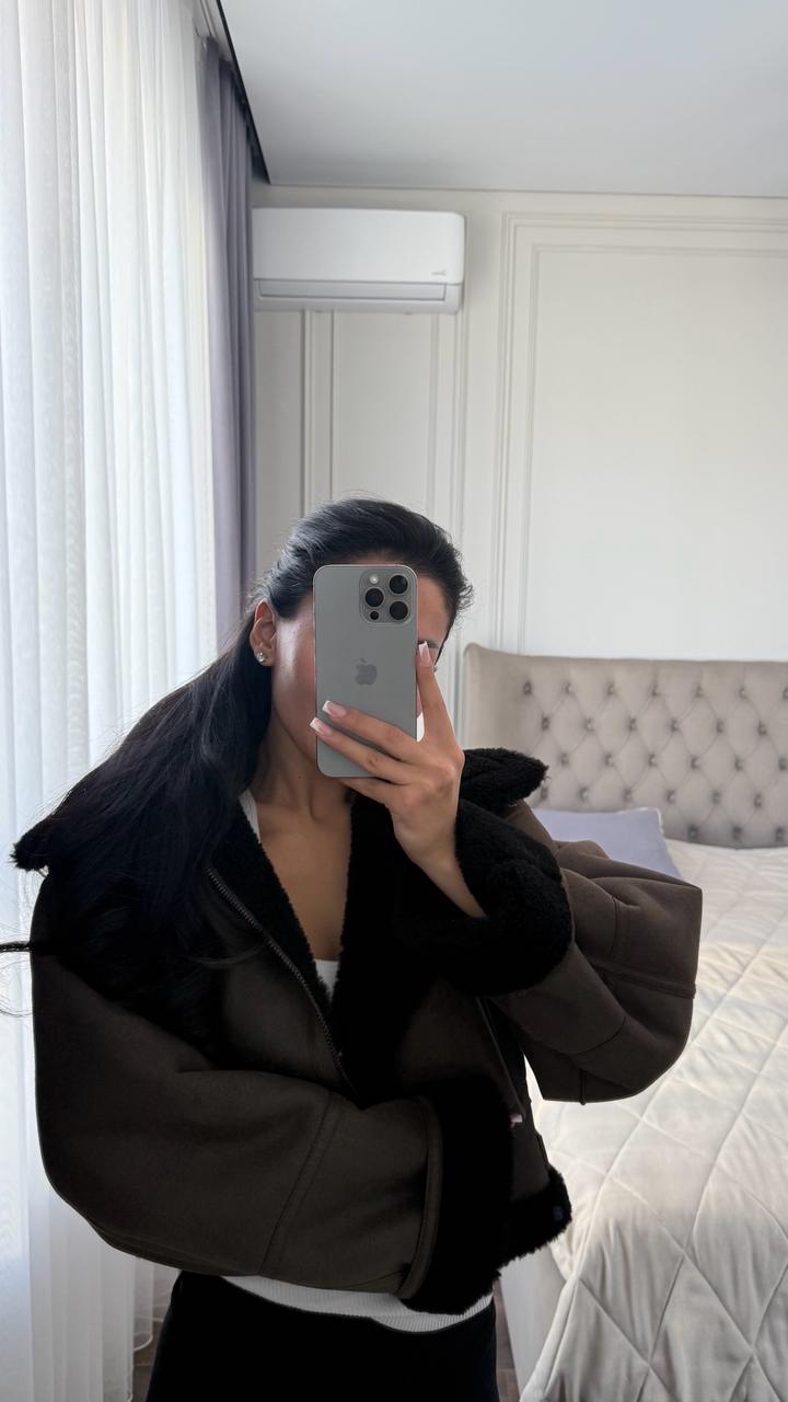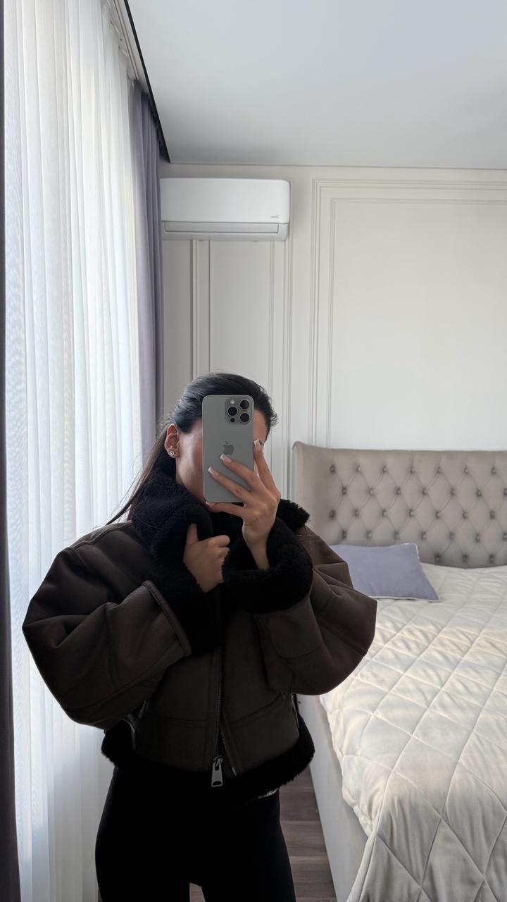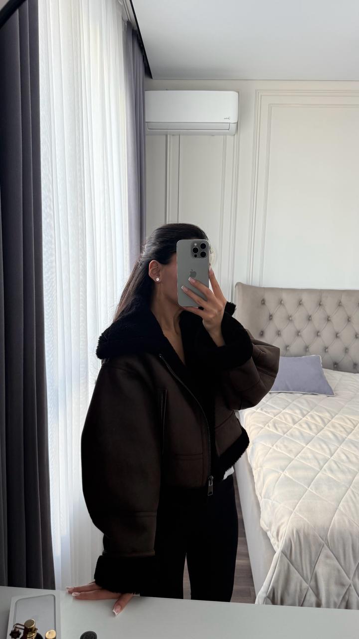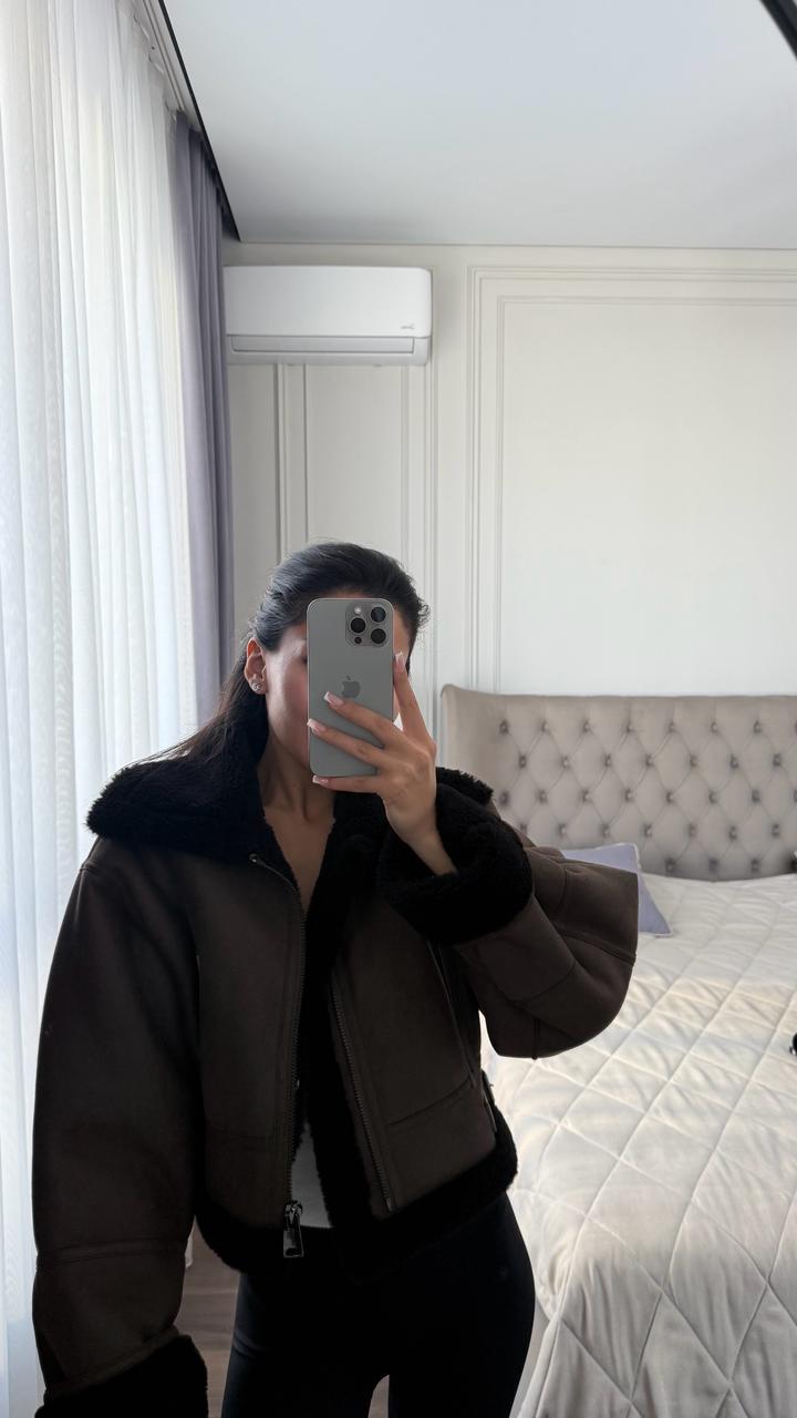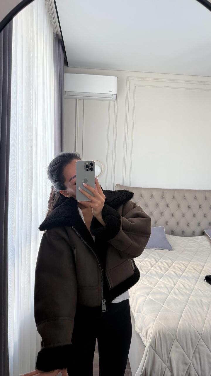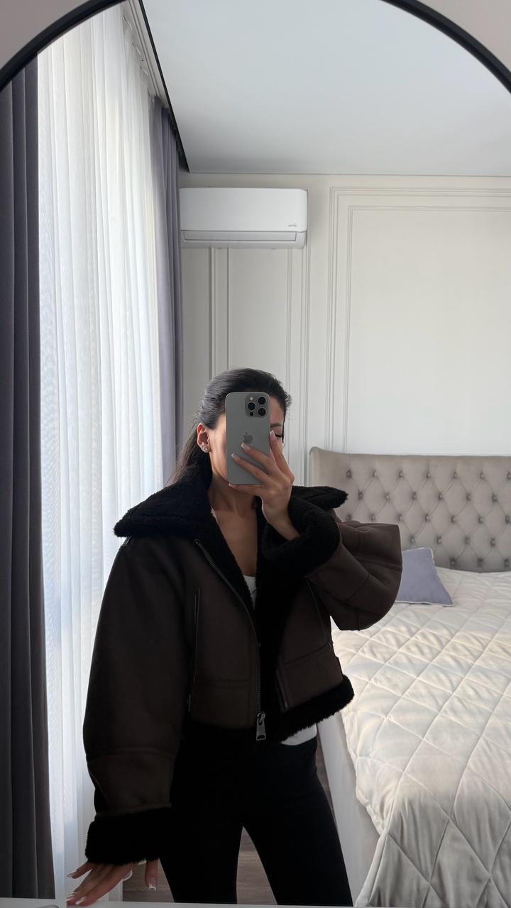 Теплая укороченая дубленка Zara. Внутри мех, в коричневом цвете. Размеры xs,s. Артикул: 406445