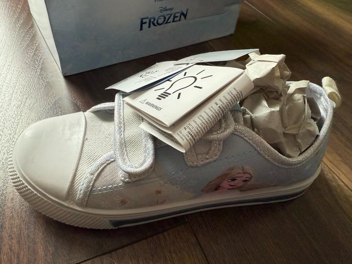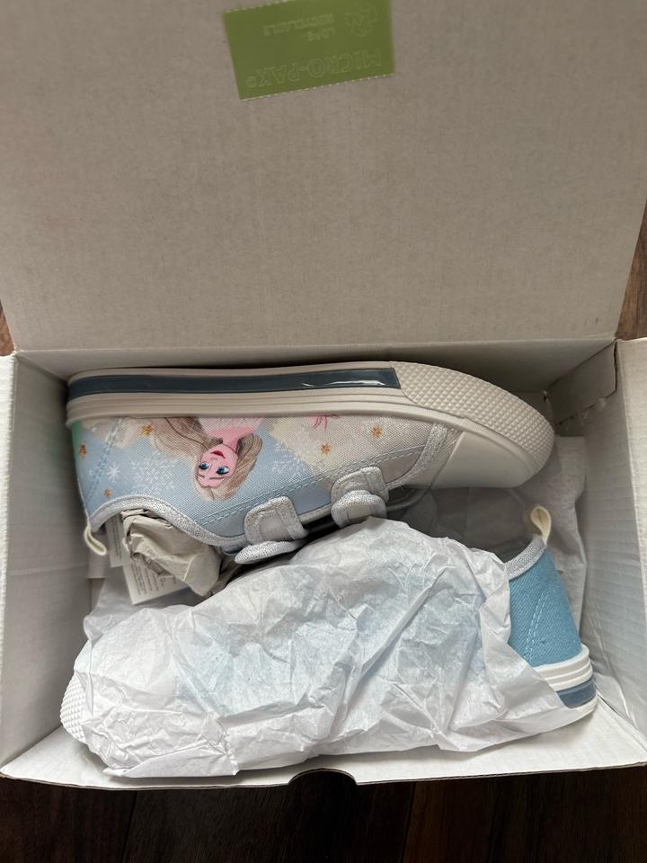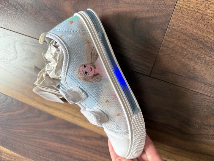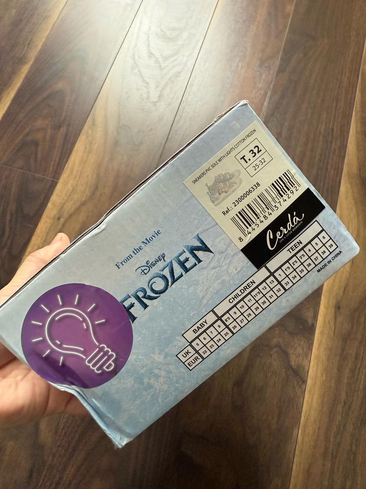 Детские кеды Cerdá Disney Frozen, новые. Заказали с Америки, не подошел размер. Со светящейся подошвой из ПВХ, выполненные из хлопка в голубом цвете Артикул: 406992
