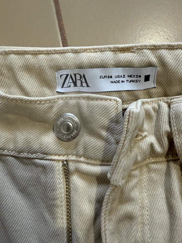 Бежевые джинсы ZARA, новые. Не носила, лишь постирала 1 раз. Покупала беременной, не вернулась в свой размер)) Артикул: 407019