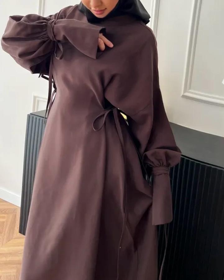 Закрытое платье, имеются завязки на талии и у рукавов, можно регулировать ими высоту рукавов и пышность. (при покупке одна ленточка была оторвана, пишили в ручную )Надевалось один раз. Приятный материал, плотный и легкий подойдет на S-L Артикул: 407168