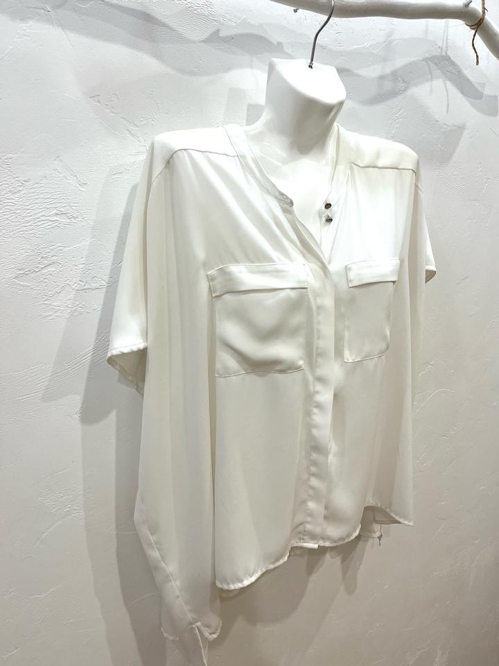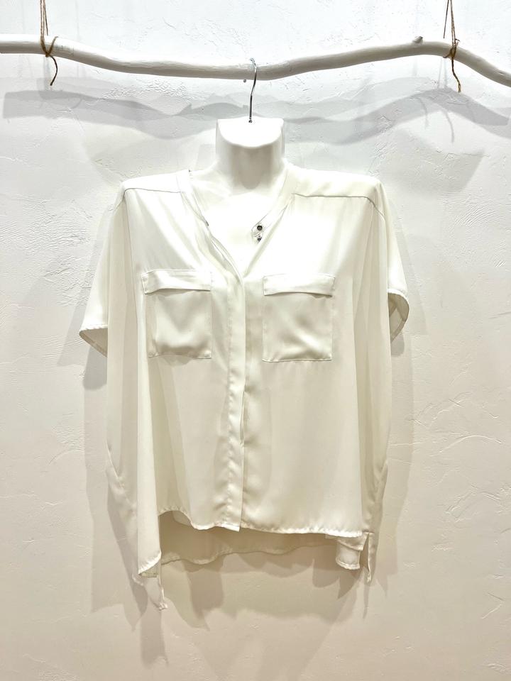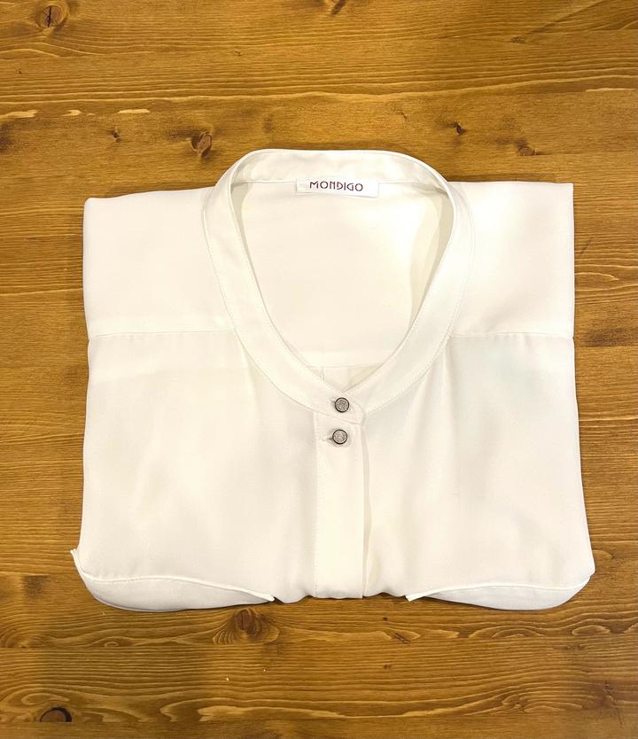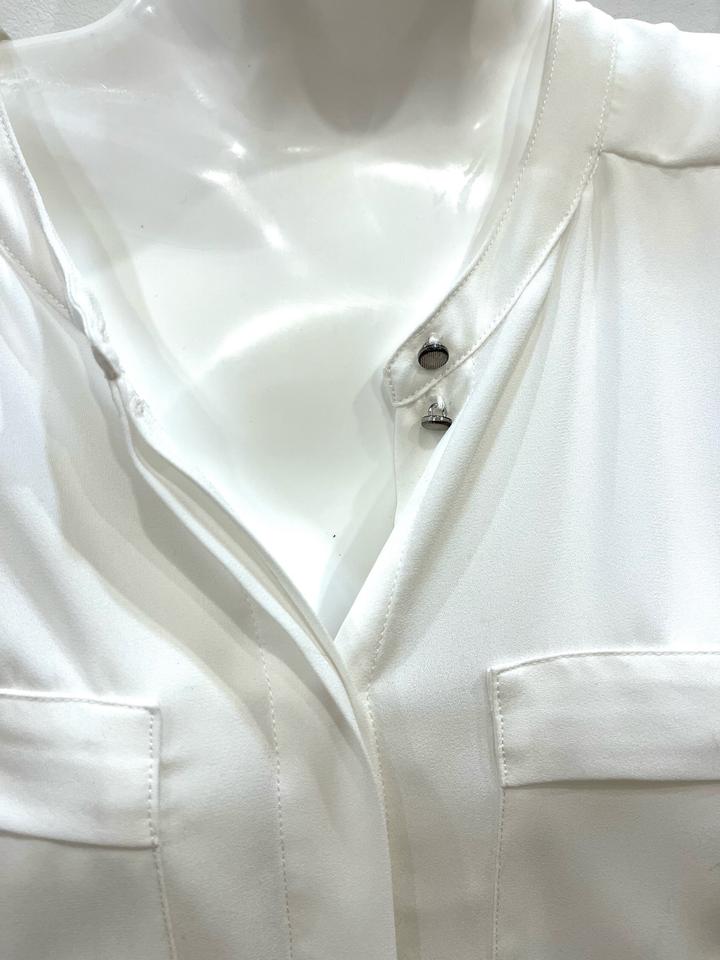Блузка белая на пуговицах. Длина по спинке 62 см, спереди 59 см. Артикул: 407301
