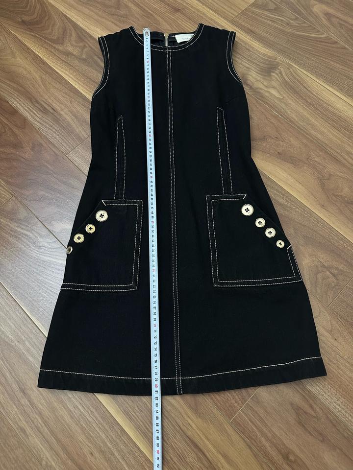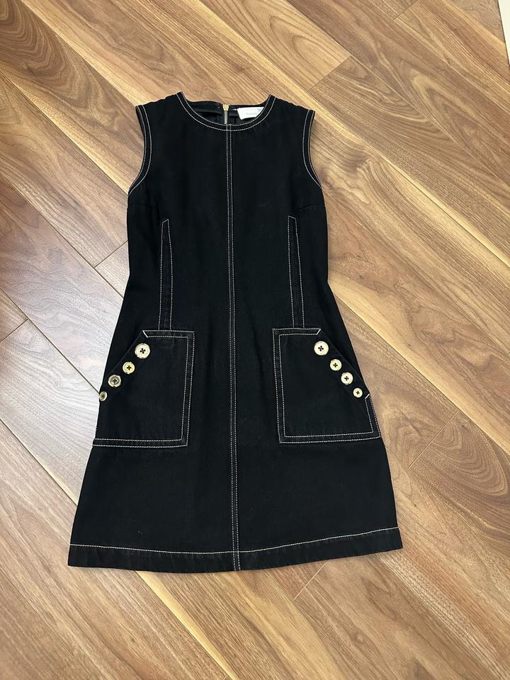Платье из черной джинсы Elisabetta Franchi, размер 40 it. Карманы рабочие. Золотая фурнитура. Классно смотрится с кедами, кроссовками, так и с ботильонами. Длина платья 81 см. Артикул: 408013