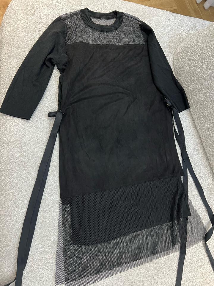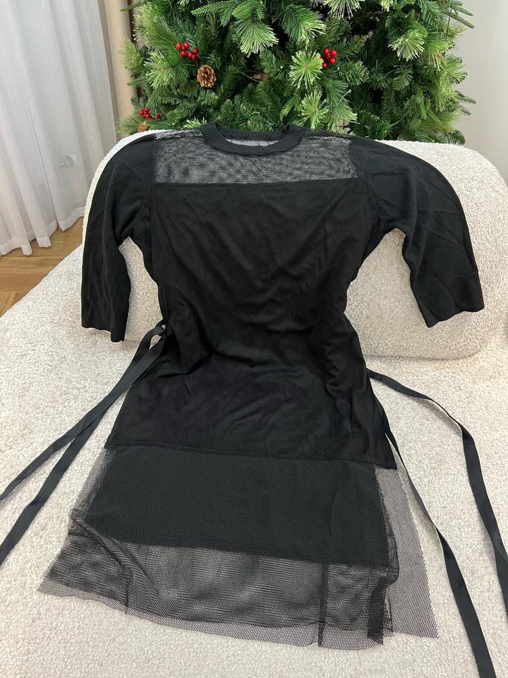 Платье черное S материал: мягкий и комфортный трикотаж + спандекс поверх + сетка, с лентами по бокам. Использовался 1 раз. Артикул: 408112